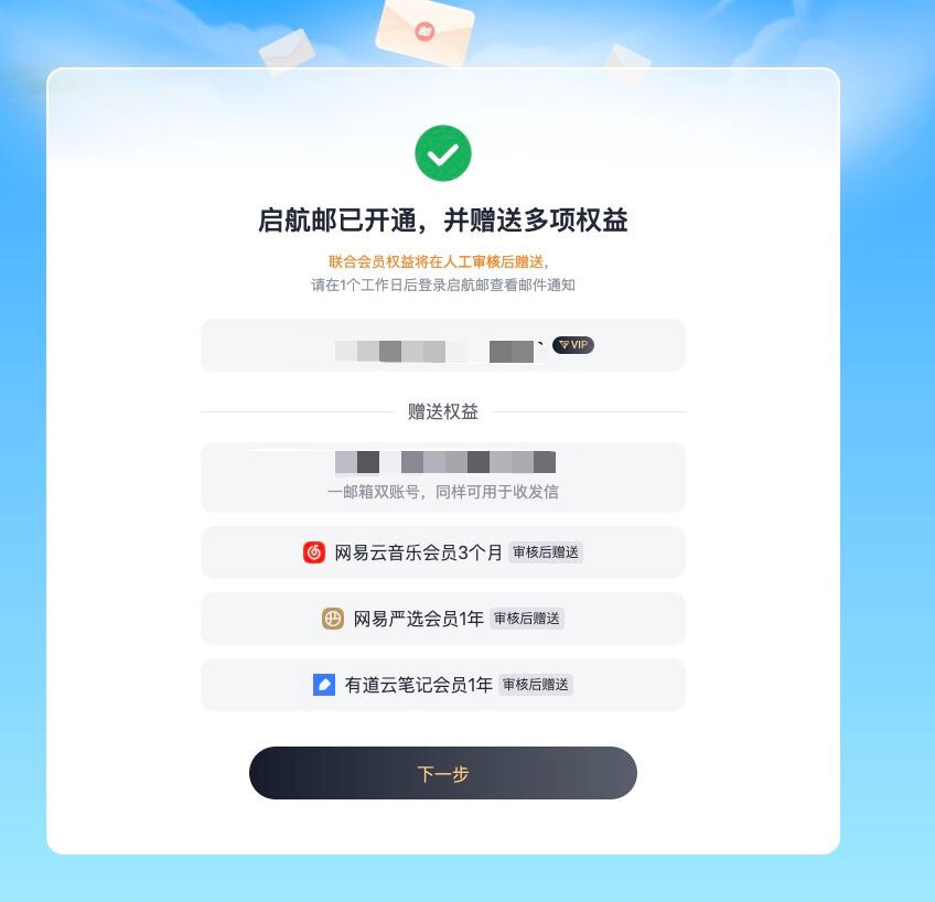 从 5 月 30 日起,全国所有拥有 Edu 邮箱的高校学生,无论是本科生还是研究生,都可以免费领取“启航邮”专属 VIP 邮箱(点击跳转),还能获得网易云音乐、网易严选和有道云笔记的免费会员大礼包。