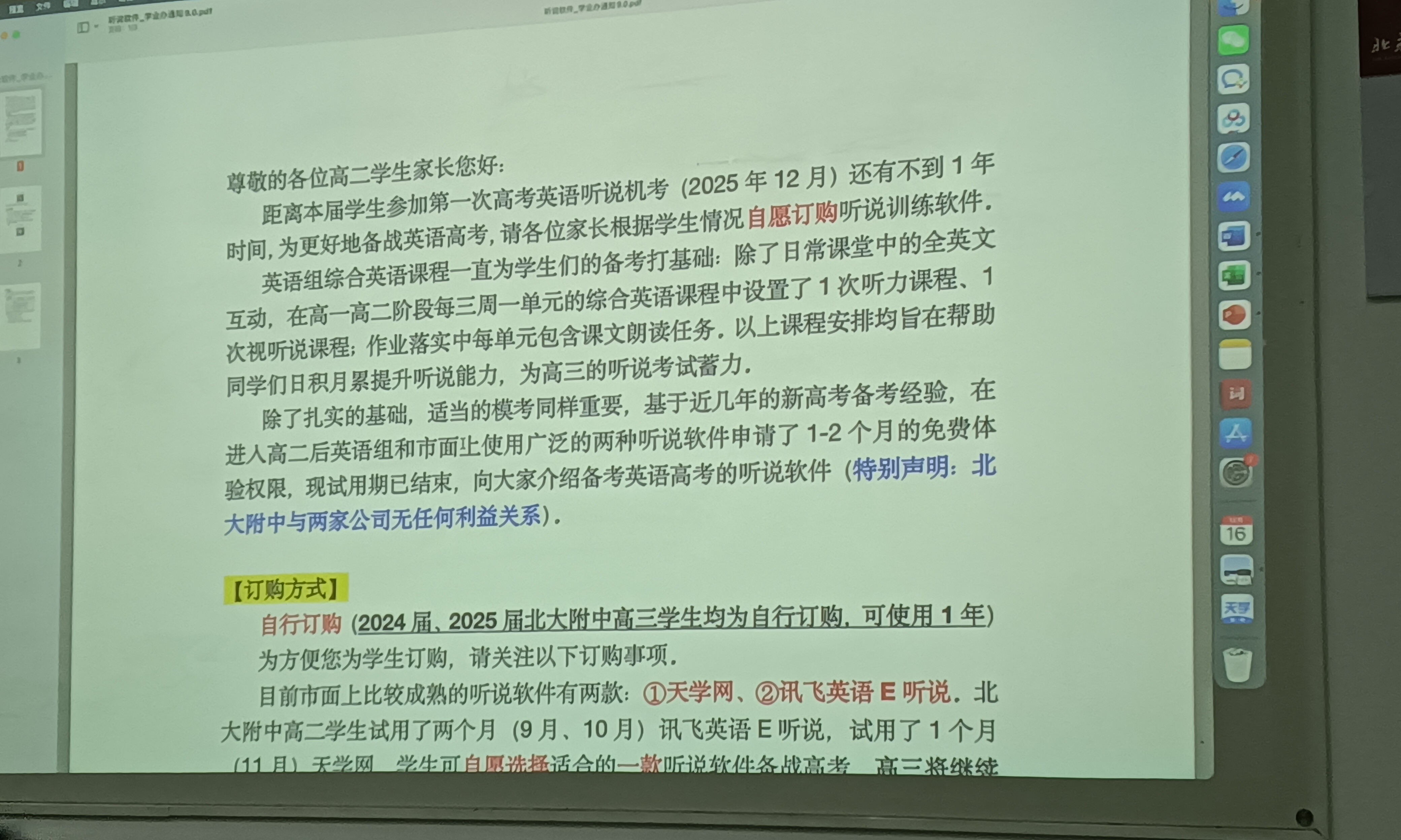 3月15日,西一中英语备课组再次与天学英语员工王某以及学生和家长确认,没有发生收费的行为。