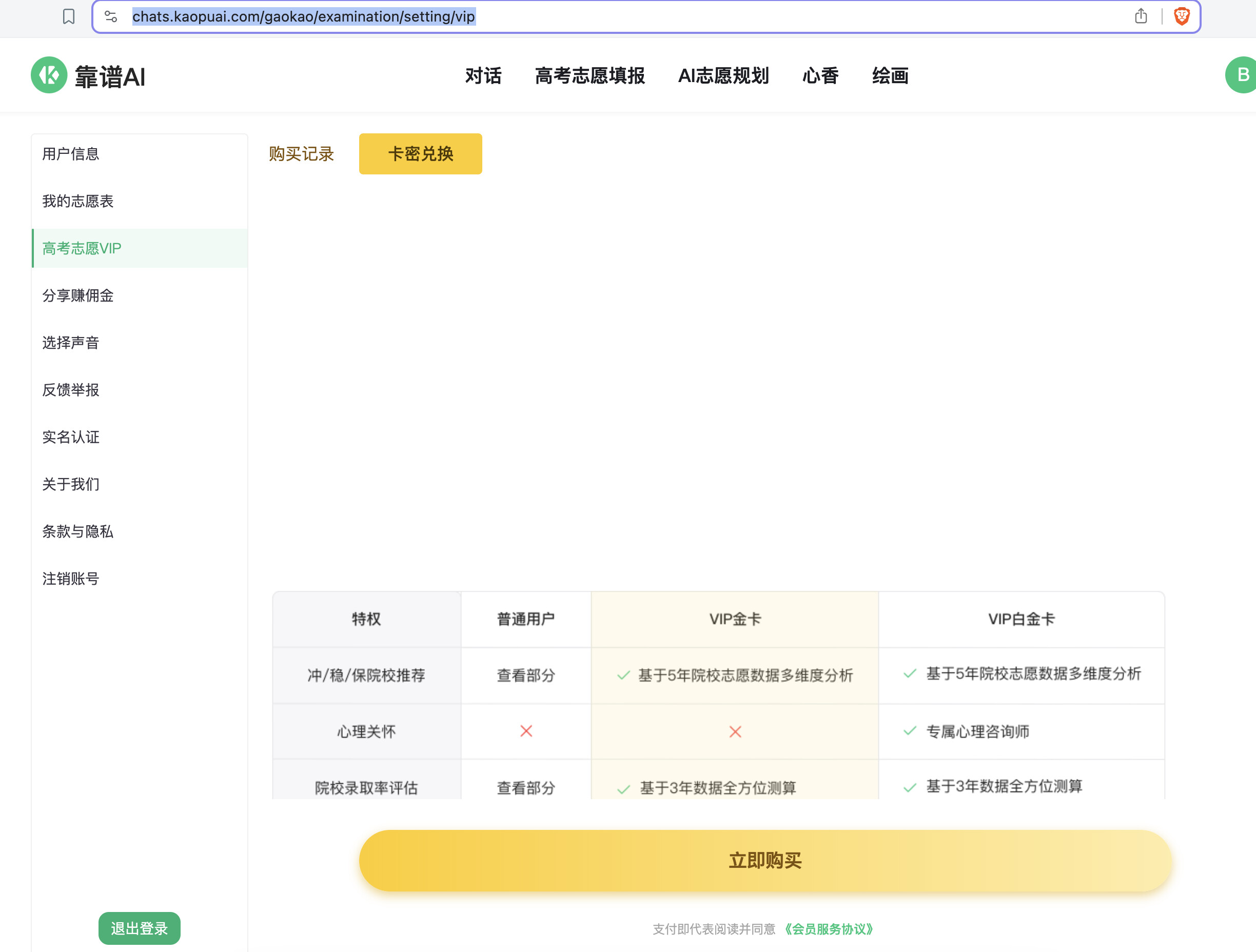 學校內網引入了這個https://chats.kaopuai.com/gaokao/examination/setting/vip