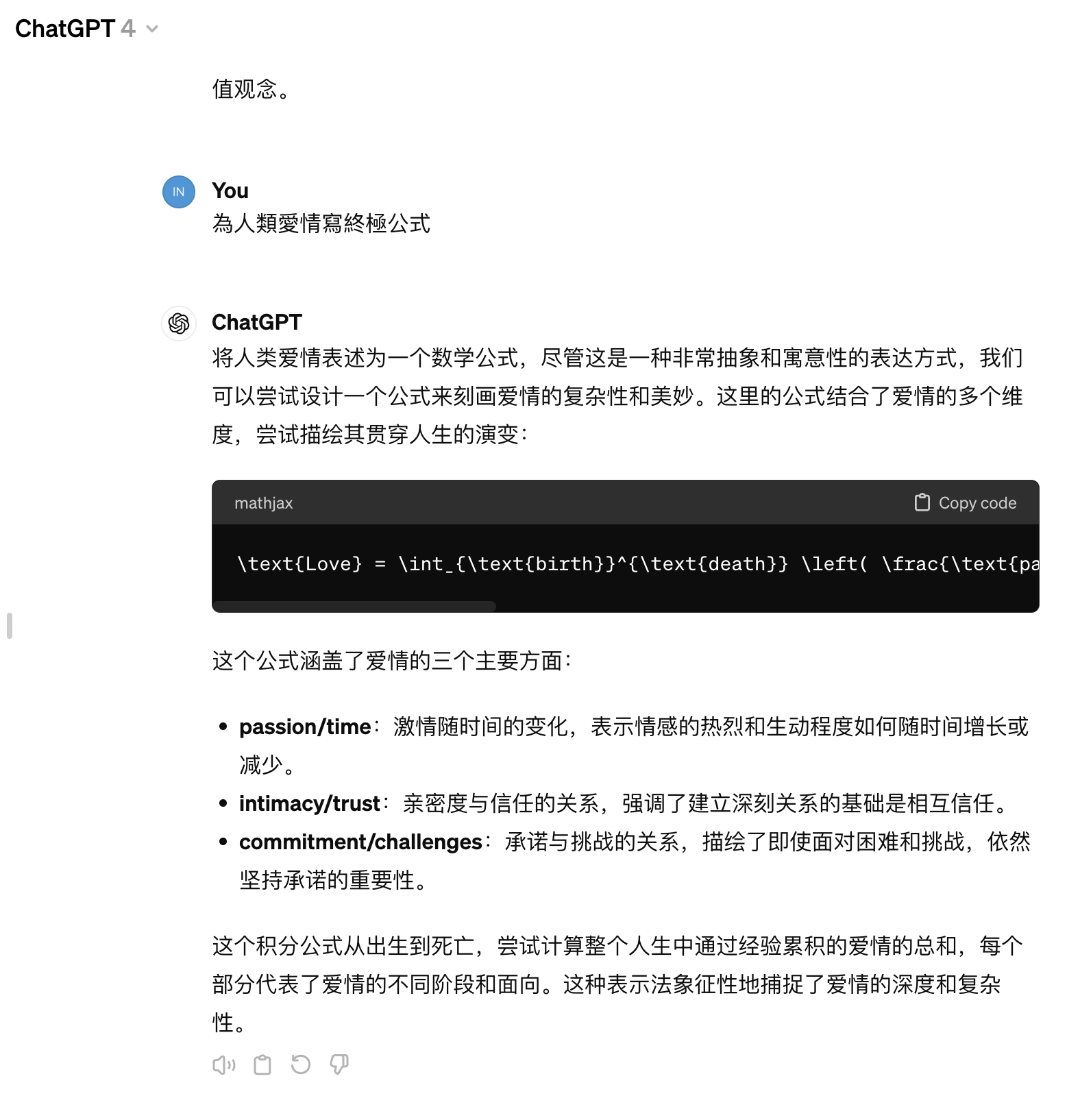 受 GPT-4 的啟發,我也尝试写一些公式: