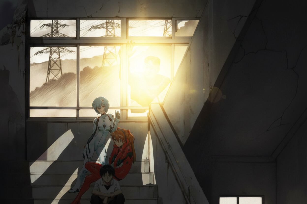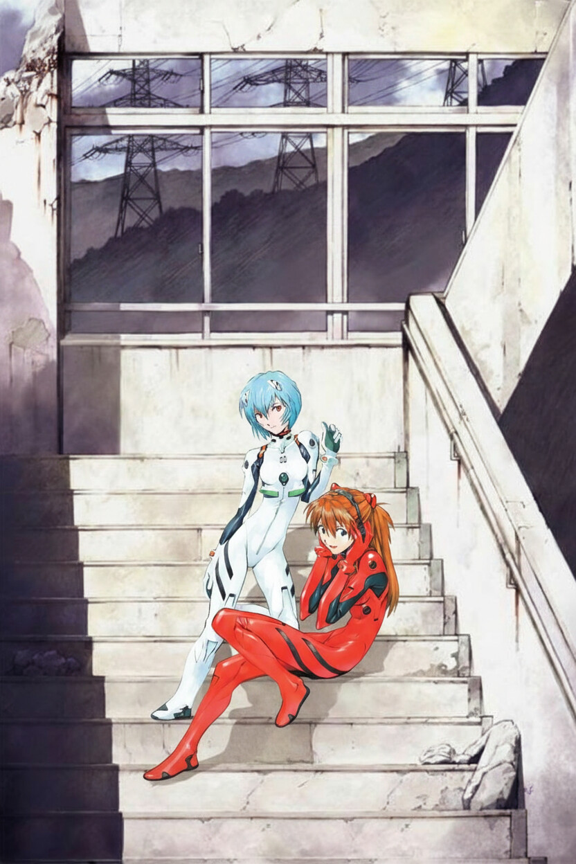 @Nano put these two girls that in the second picture into the first one. Let them sitting on the stairs.