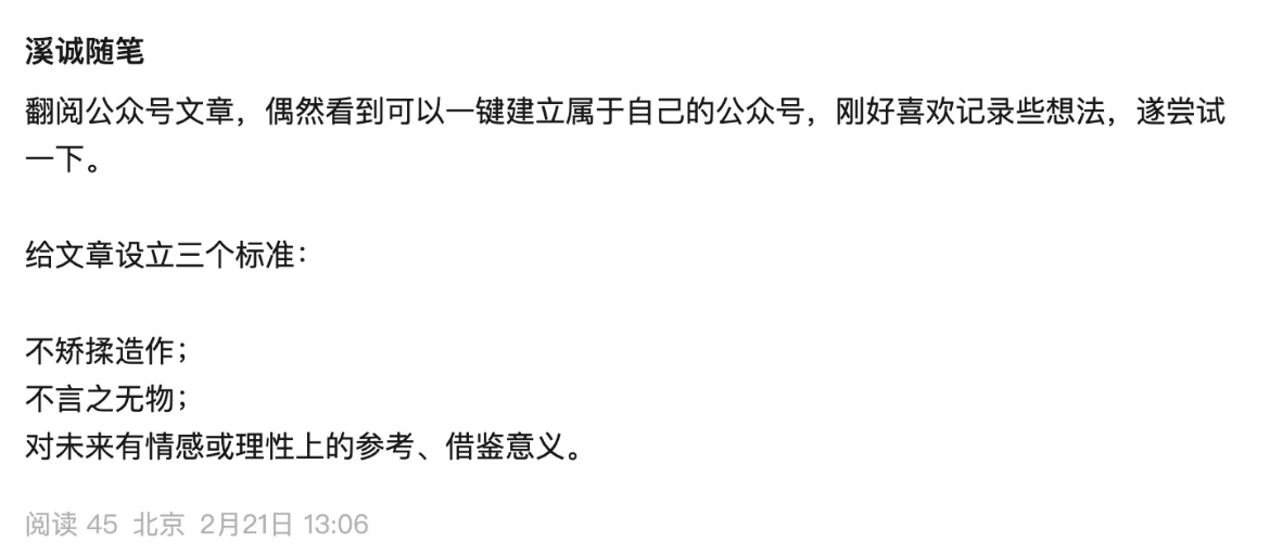 其实并不是我有多理性。最开始定下来这个标准,是因为本人没什么文学功底,不清楚“无病呻吟”和“抒情文学”的边界。怕想着第一种,写成第二种,成为了什么“青春伤痛文学”。