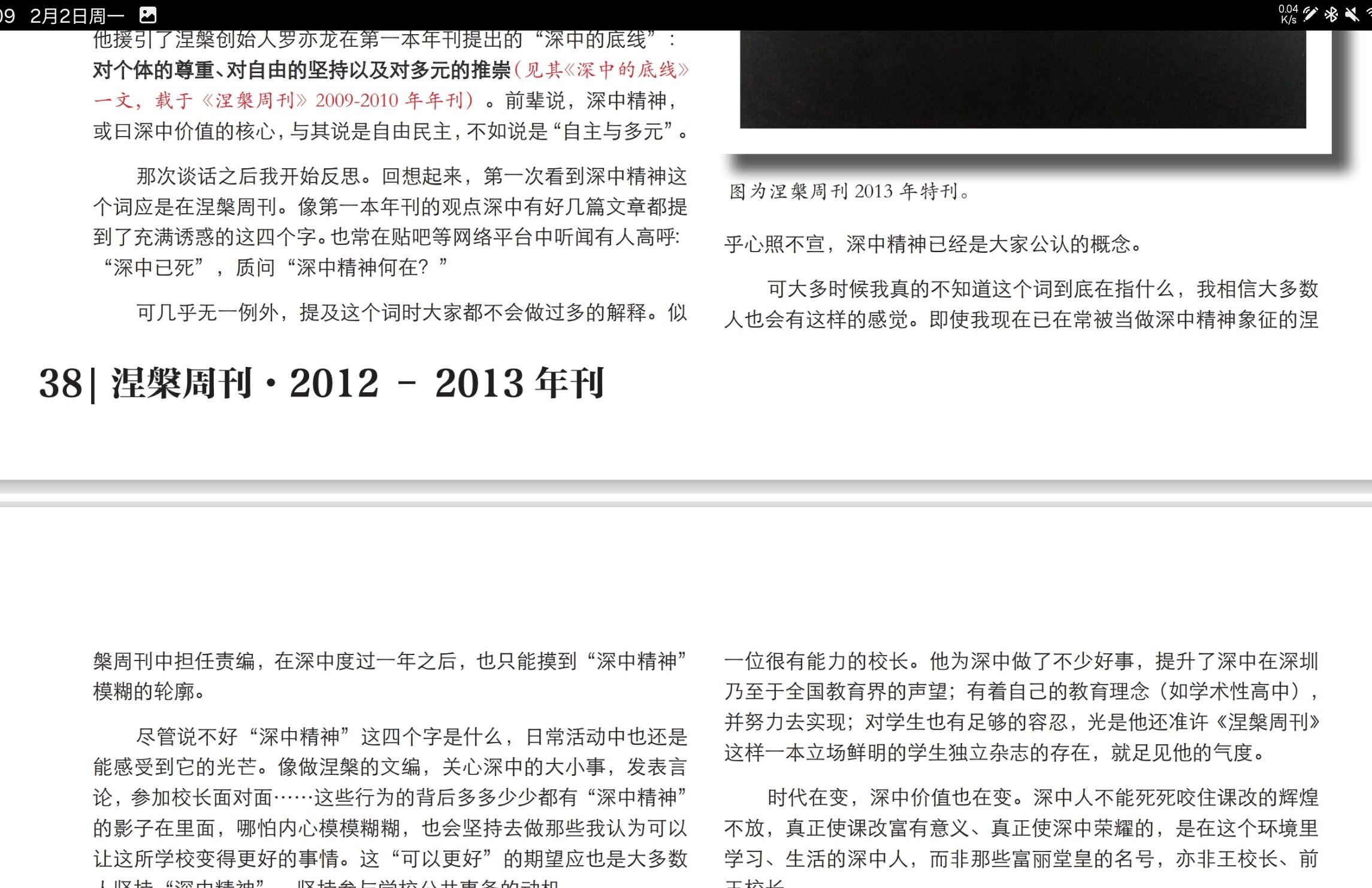 和理解“深中精神”。我眼里《涅槃周刊》等学生媒体便是这传承