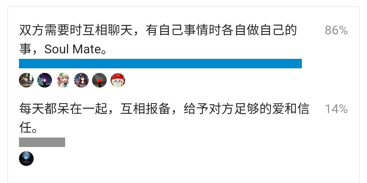 - 双方需要时互相聊天,有自己事情时各自做自己的事,Soul Mate。