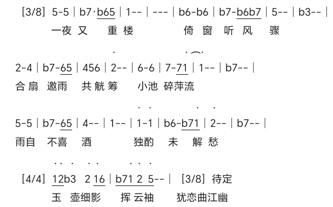 再说小池这个词,它确实有狭小幽闭,如果加以“小石潭记”去理解那确实有清冷至于寒的感觉。但是它本身又过于平白,不是一个让人能想起用典的这么一个概念。你这首词本身带有很强的主观色彩,那么出现一个近乎“无我”的词就会显得笔力稍减。为什么我感觉“玉池”会好些呢?(因为mygo的池子叫玉池)玉池有种精致,莹润的这样一种感觉,“碎萍”这种“粗暴”的“打破”就能形成一种反差。并且传达出一种“好端端的玩意被折磨成啥样”的意境。再加上你这词里面又“重楼”,又“玉壶”的,一看就是富贵人家生活条件不错,没啥山野之趣味。这时候来一个看起来很“山里边”味道的“小池”就不匹配了