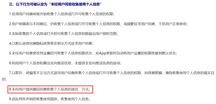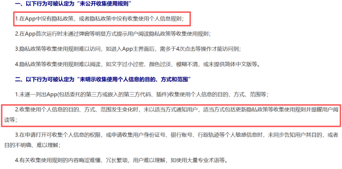 图片来源:《App违法违规收集使用个人信息行为认定方法》截图