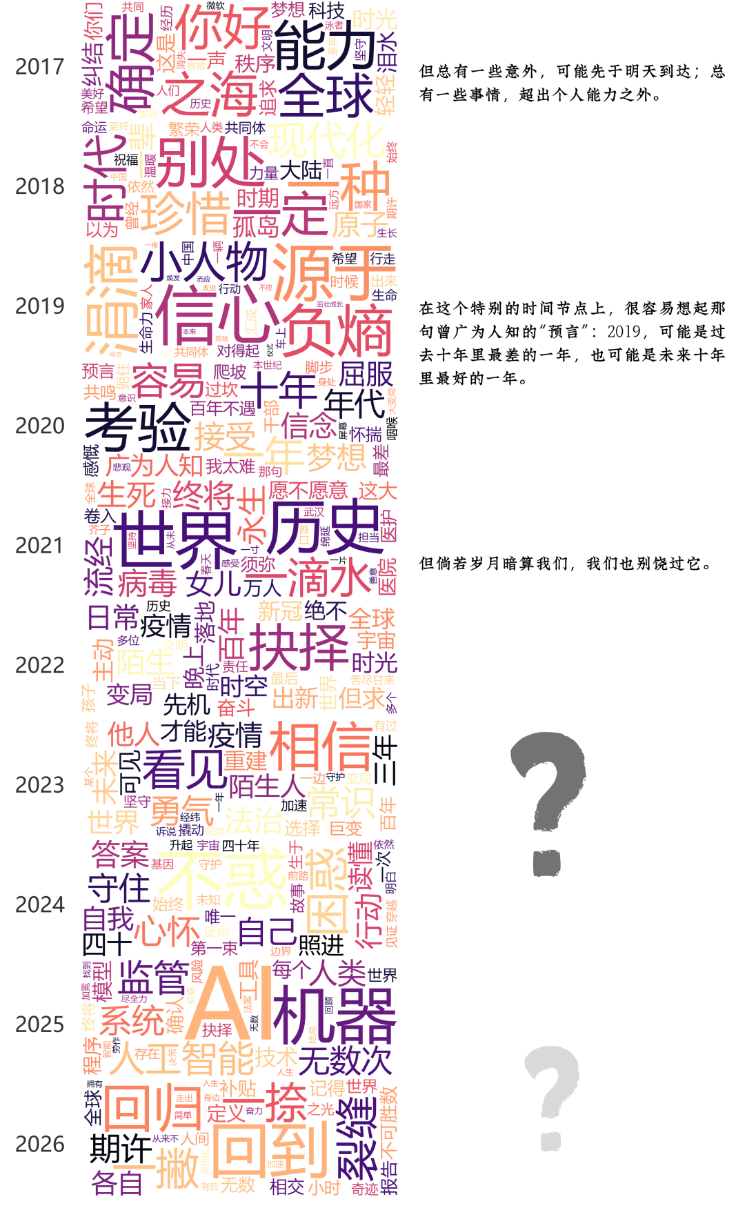 文字浩如烟海,历史不会记住勉强完成的新年献词。但历史有可能记住:谁在难以言说的时候,选择了不说。