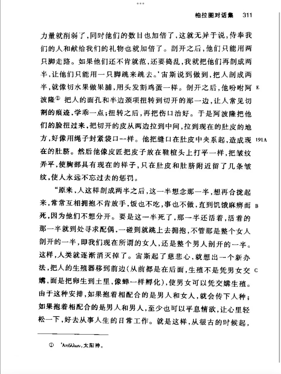 希腊人胡言乱语丝毫不亚于印度人。这一段应该是在讲理型世界和物质界的差距,证明物质界存在缺陷性。但是使用的是和印度人一个样的神话故事。