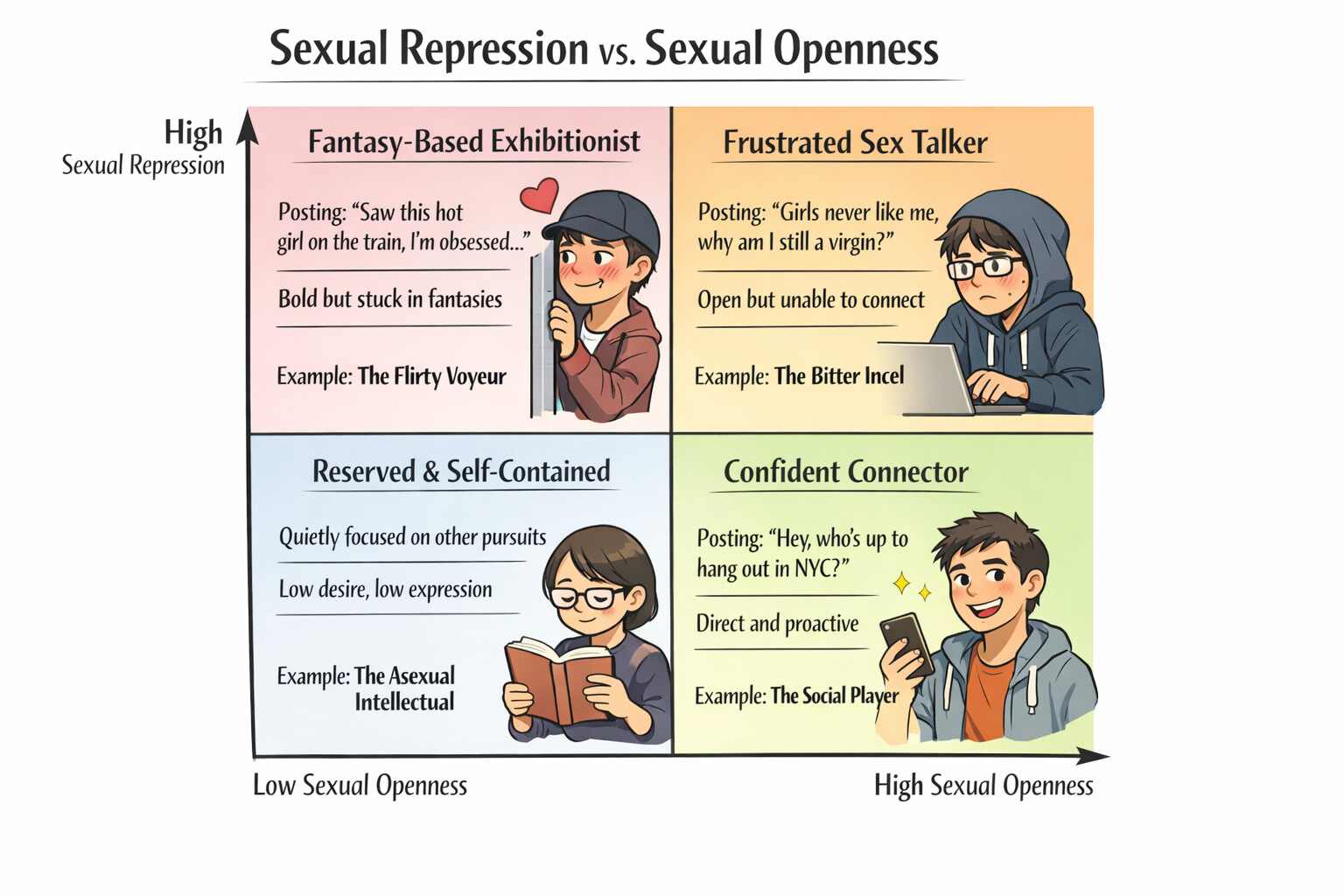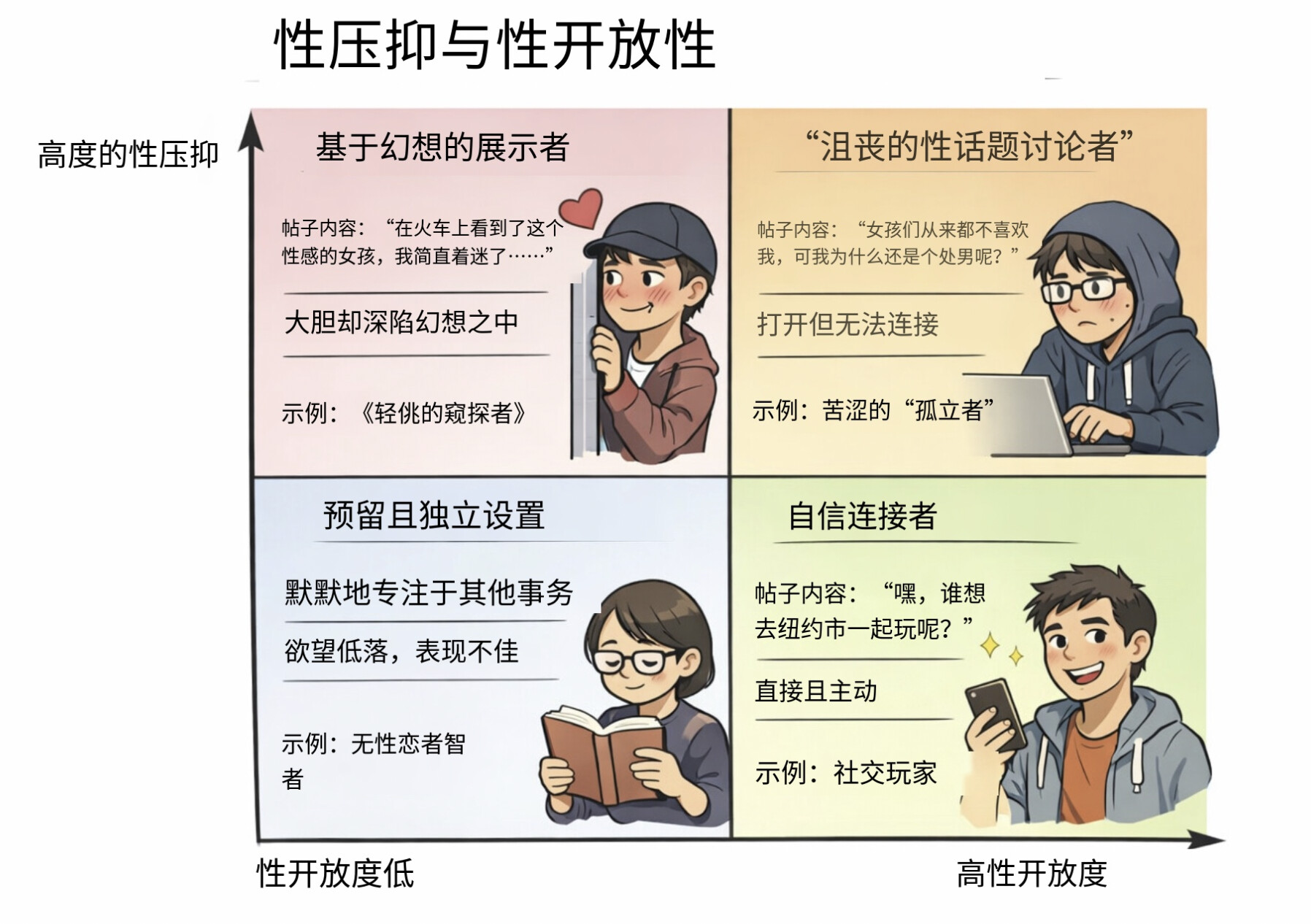 - 性别差异在缩小:除了男性更倾向于压抑情绪外,男女在性欲强度、性羞耻感和认知重评的使用频率上已无显著差异。