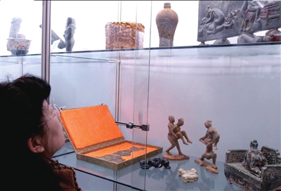 2003年10月27日,参观者在性文化实物展览上参观。新华社特供本报图片