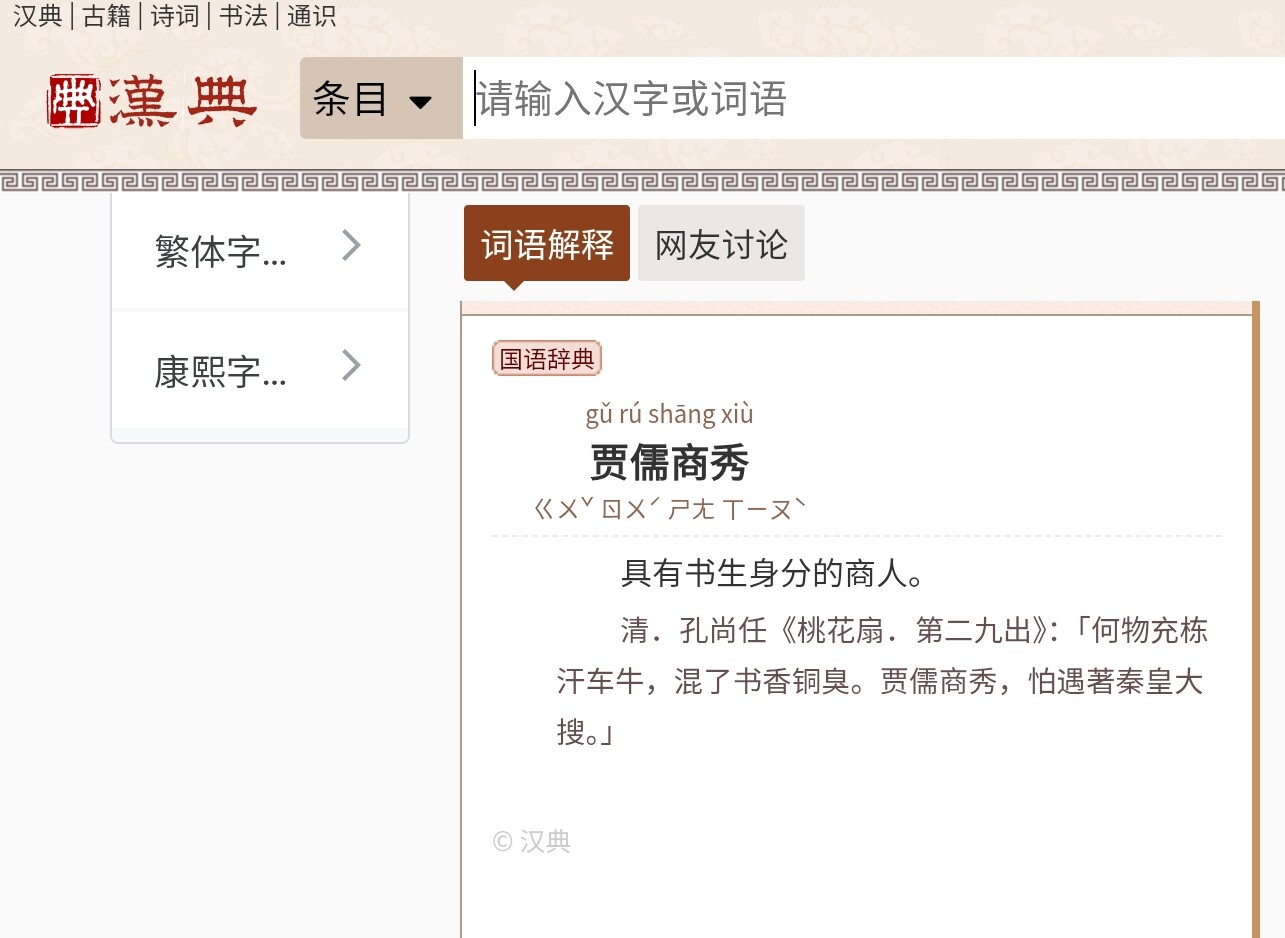 我记得历史课好像讲过,明清商帮兴起,富人让后代学儒考科举,考不上就接着经商,产生了大量有儒家思想学识的商人,他们为了提高自己的社会地位就按着儒家思想干事说话,形成了大量儒商,好像是