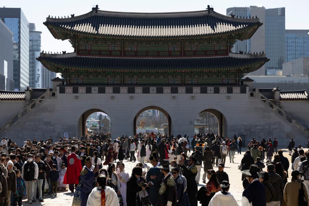 2月17日,游客在韩国首尔的景福宫参观。新华社发(全休相摄)