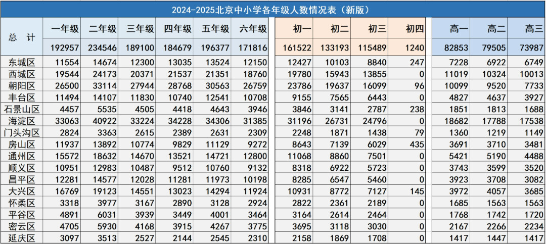 总体来看,24-25年度北京中小学在校生总数为1817264人,较上一学年增加67656人,但增幅同比上年(11万人)显著收窄。