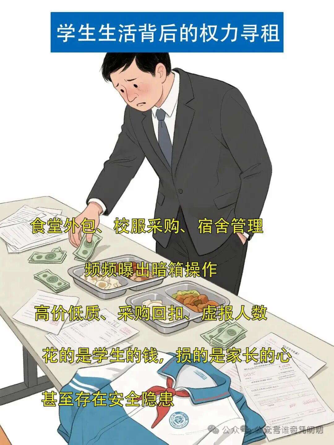 靠权力强制约束价格?这就很有意思了。在学校这种闭环环境里,审批“价格”的人和拿“抽成”的人往往是同一拨,或者干脆就是酒桌上的兄弟。让“权力”去约束“权力带来的利润”,这不就是让左手按住右手别往兜里揣钱吗?
