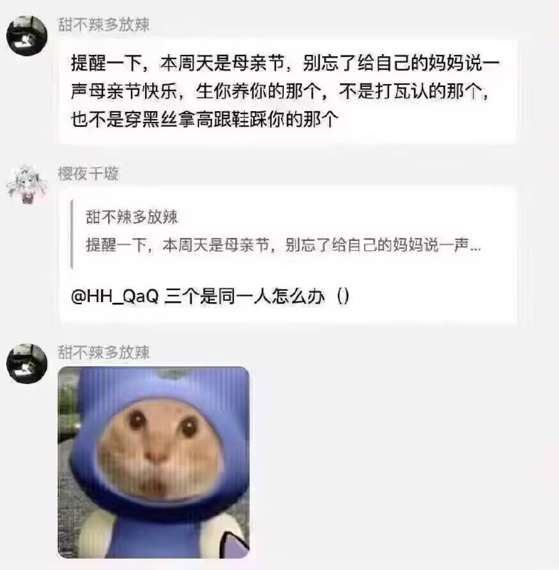 rt,主包会随时在此释出从黑叉搬运的猎奇梗图文字和挂网友逆天发言,有些内容可能在内网见过致歉(以下内容可能引起不适,介意自避谢谢(鞠躬