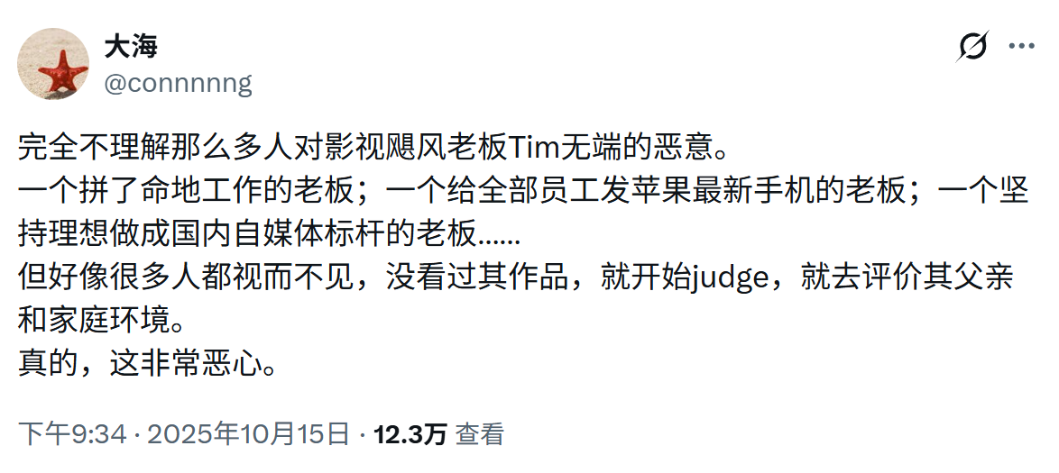 Tim好像是因为之前相亲角视频被骂的,说他富人装穷戏弄普通人,阶级问题啥的。不过视频本身质量确实可以,但舆论就这样。