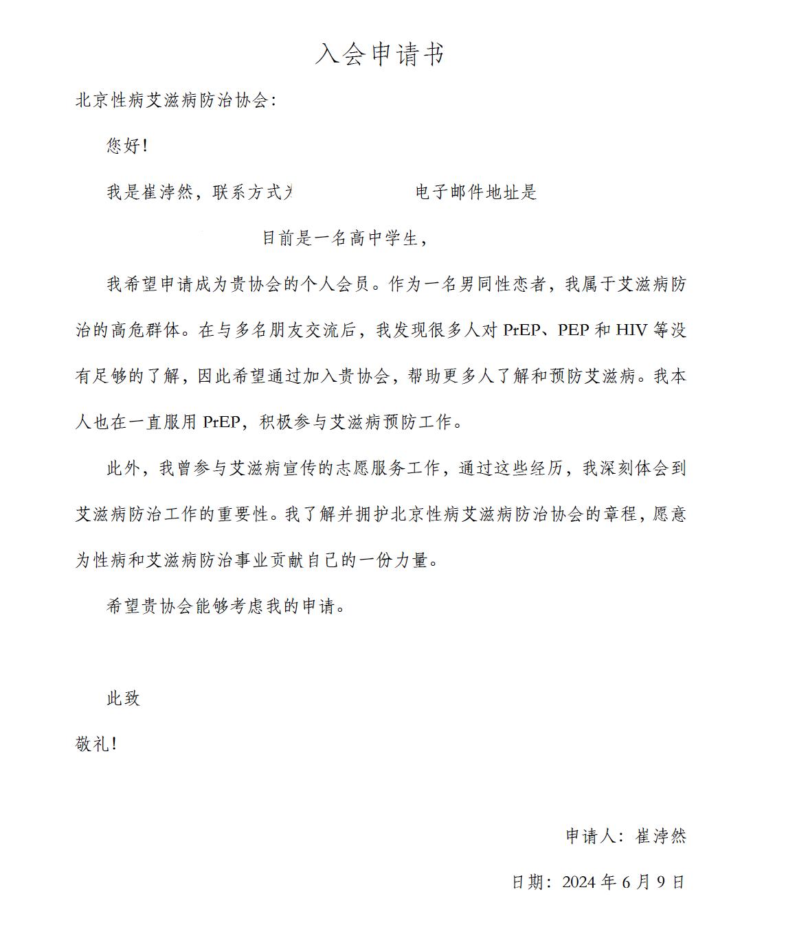 好久之前的入会申请书,给你看看