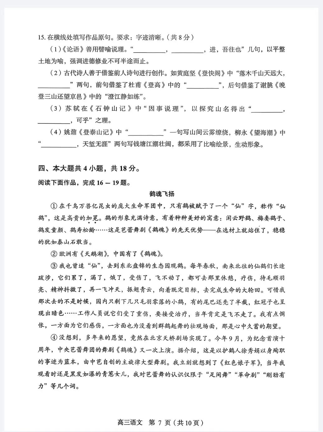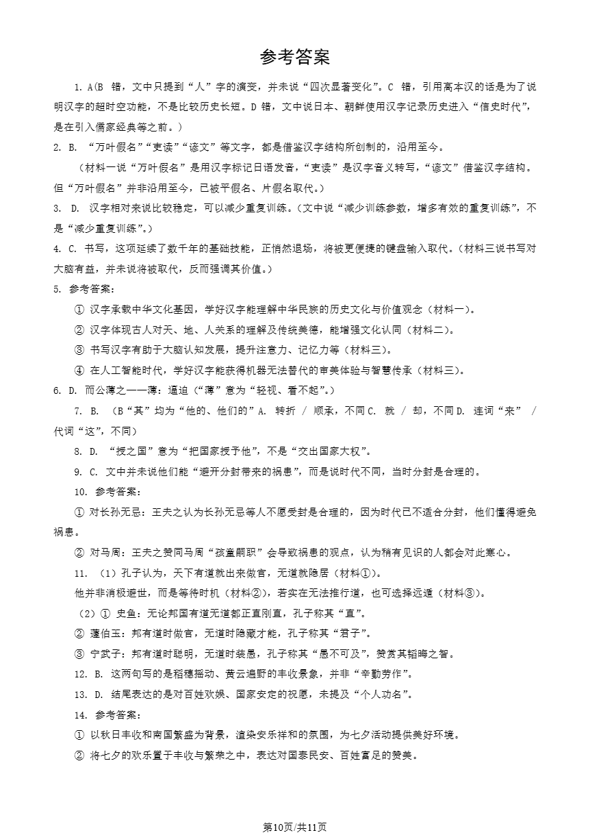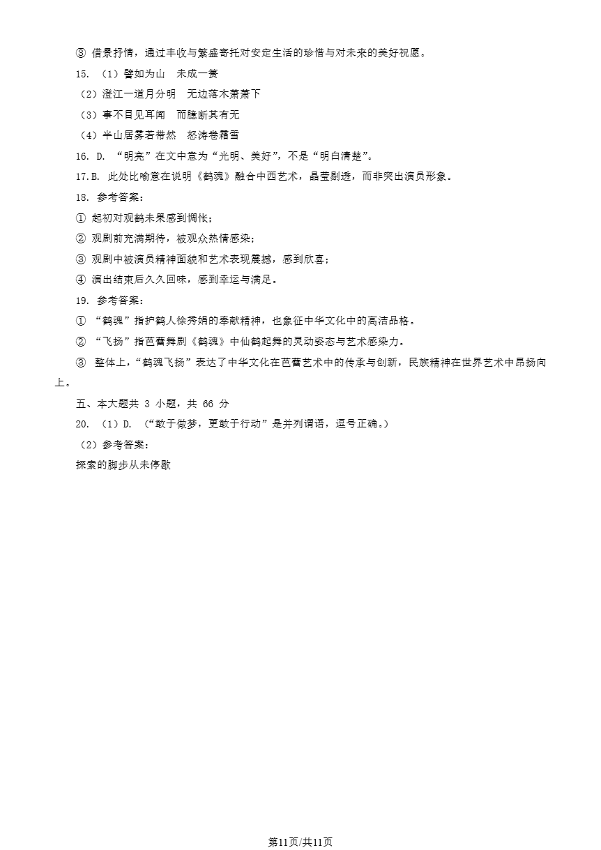 对答案!2026年北京丰台高三一模语文试题答案