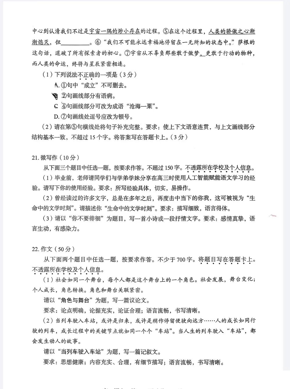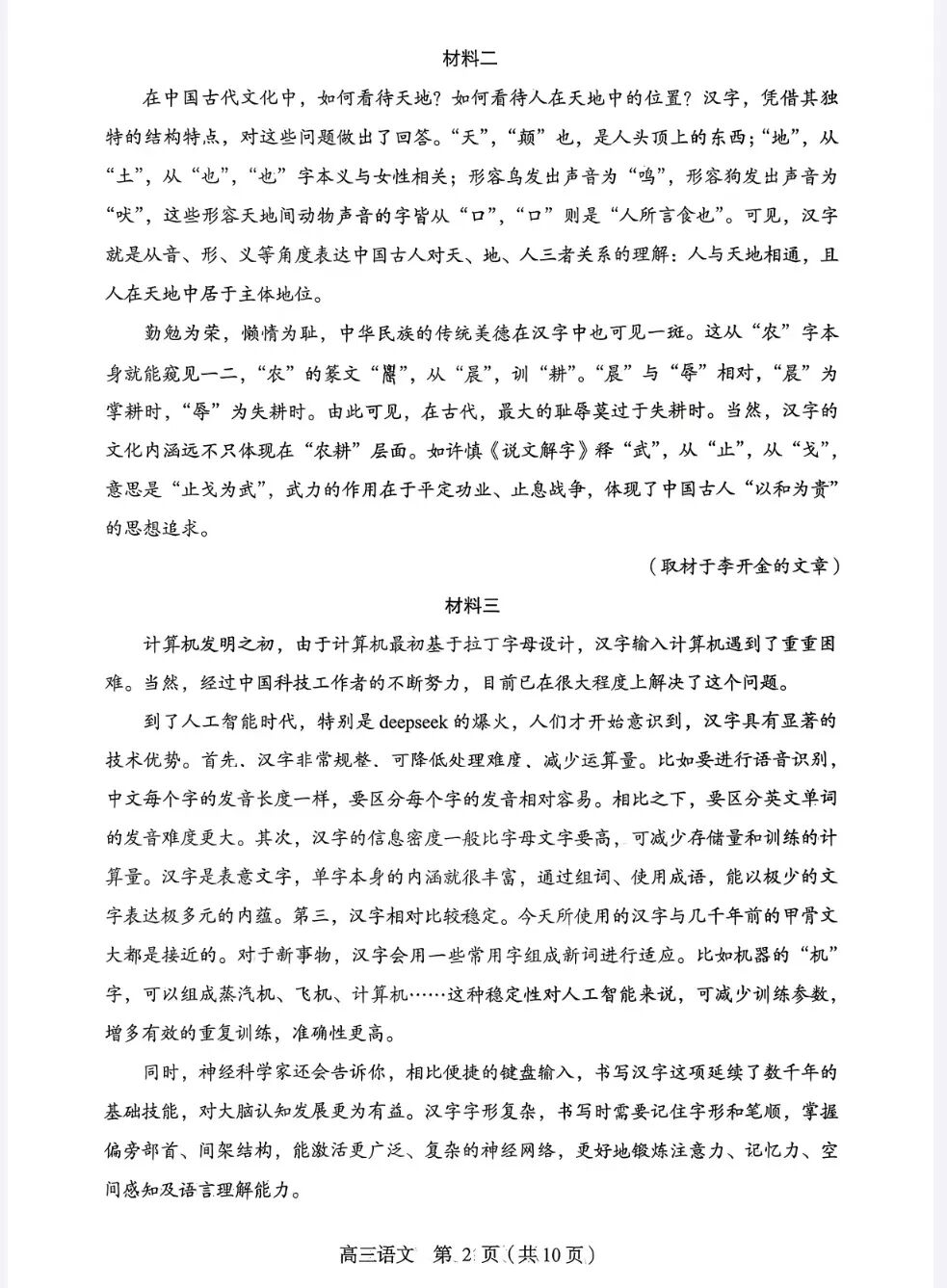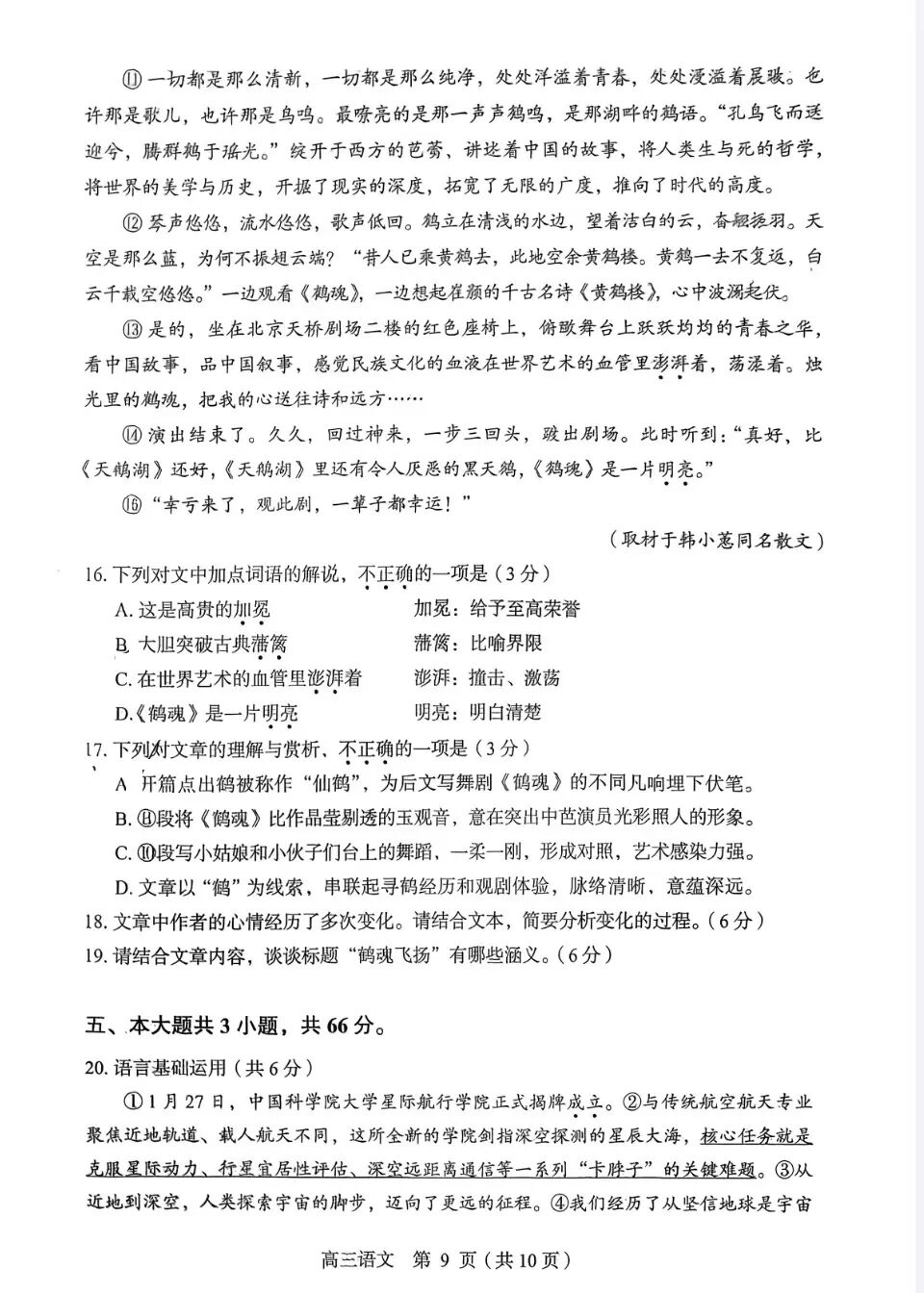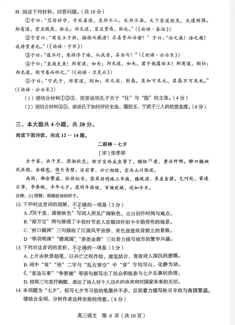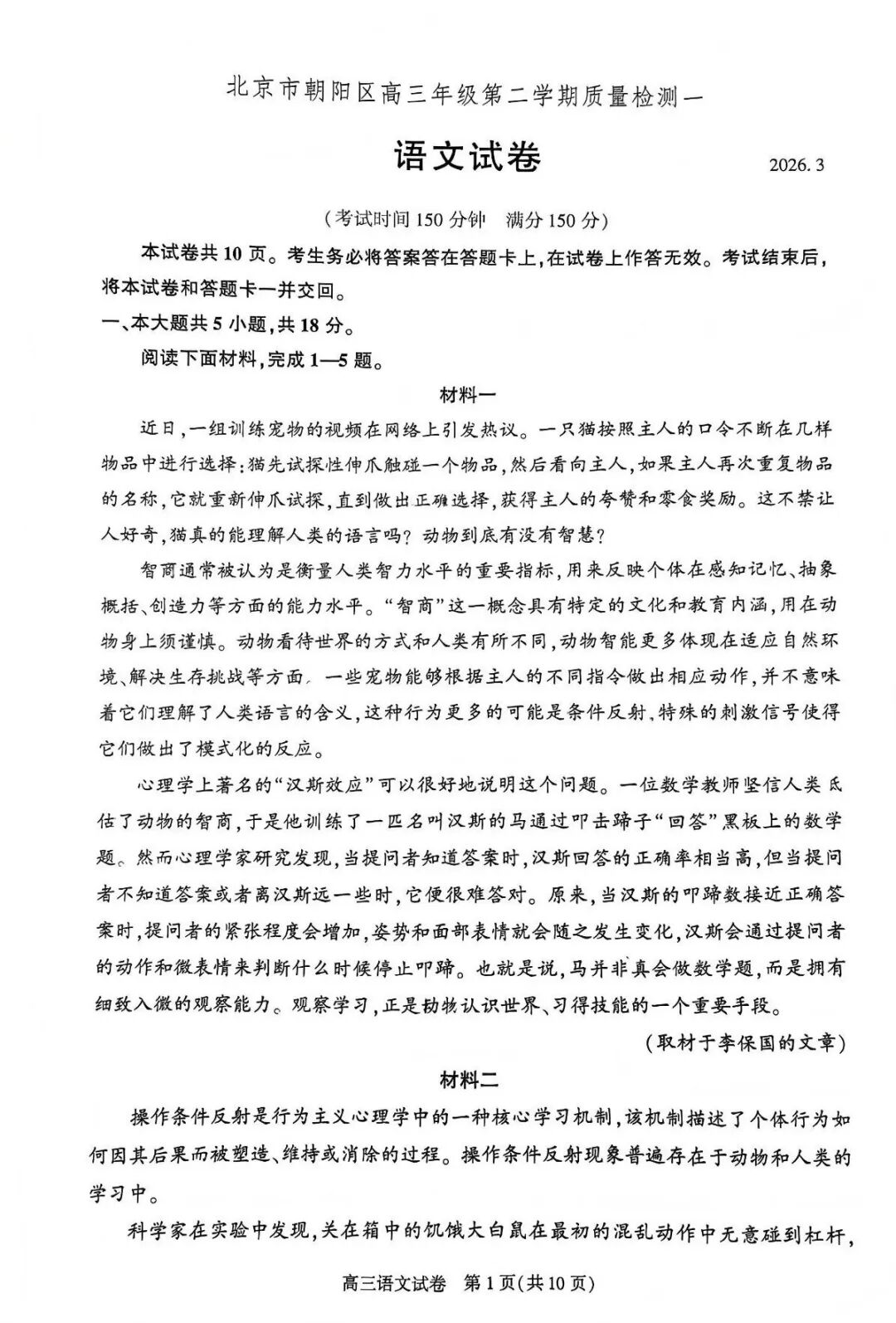 2026北京朝阳高三一模语文试题