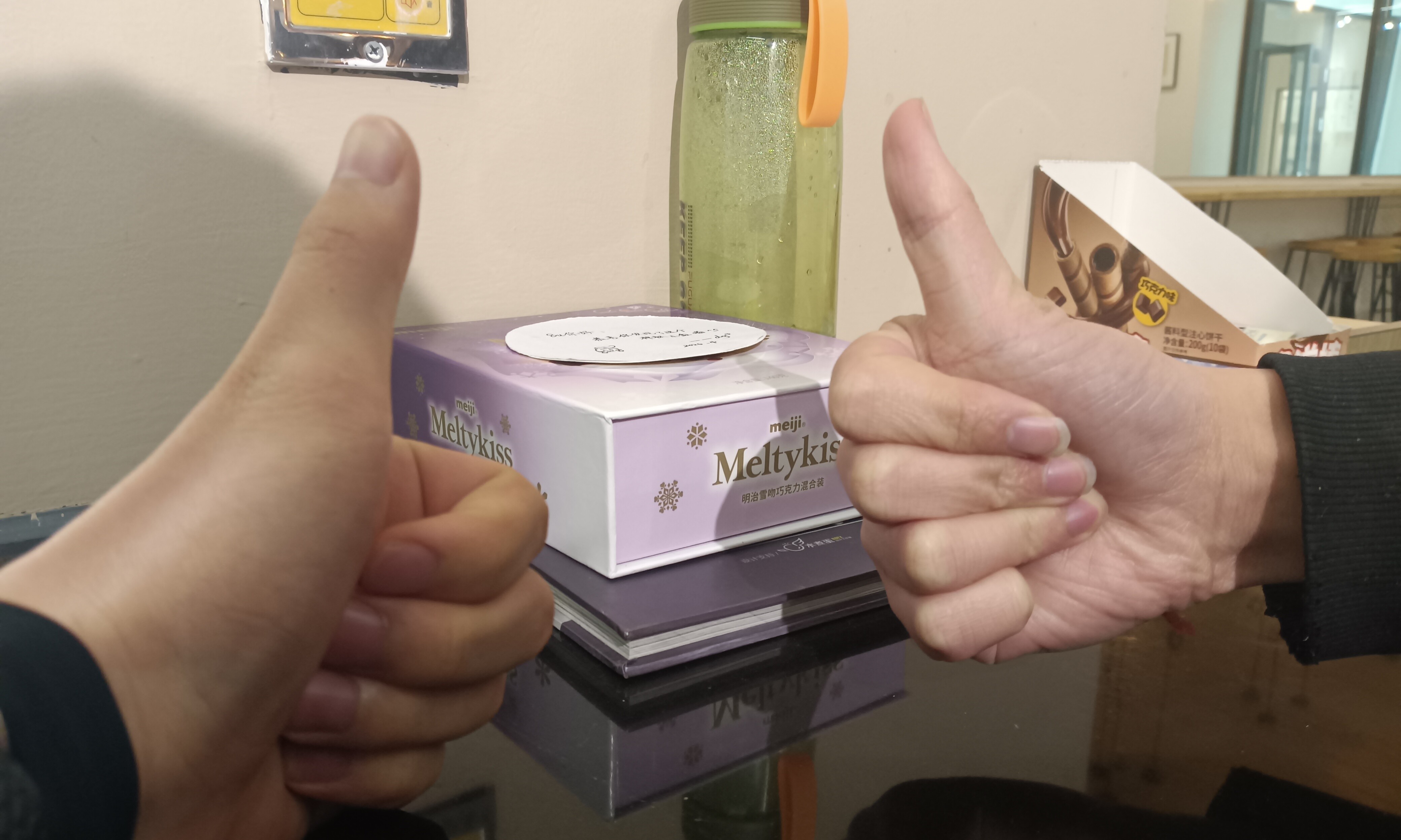 拿了颗糖,刚才去的时候有个大蓝在盒子前面坐着