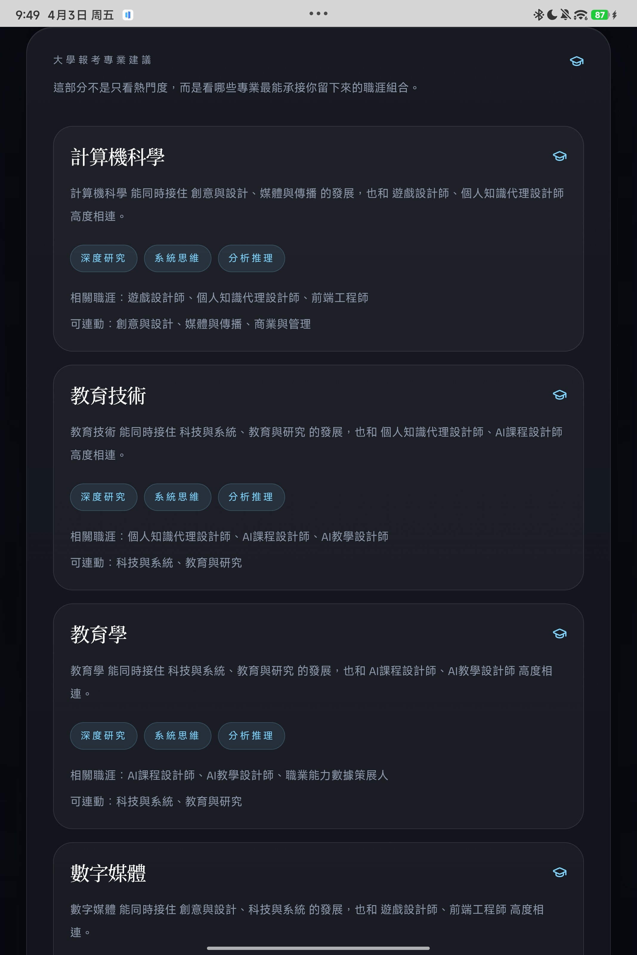 @suen 推荐把选课加上,可以排除很多专业,当然也可以 没选/有意转选课