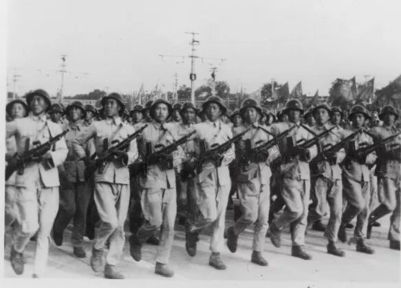 我们的国防将获得巩固,不允许任何帝国主义者再来侵略我们的国土。在英勇的经过了考验的人民解放军的基础上,我们的人民武装力量必须保存和发展起来。我们将不但有一个强大的陆军,而且有一个强大的空军和一个强大的海军。