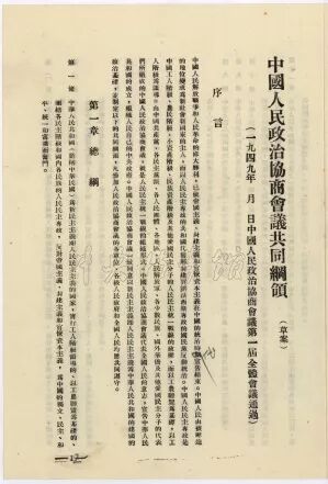 现在的中国人民政治协商会议是在完全新的基础之上召开的,它具有代表全国人民的性质,它获得全国人民的信任和拥护。因此,中国人民政治协商会议宣布自己执行全国人民代表大会的职权。中国人民政治协商会议在自己的议程中将要制定中国人民政治协商会议的组织法,制定中华人民共和国中央人民政府的组织法,制定中国人民政治协商会议的共同纲领,选举中国人民政治协商会议的全国委员会,选举中华人民共和国中央人民政府委员会,制定中华人民共和国的国旗和国徽,决定中华人民共和国国都的所在地以及采取和世界大多数国家一样的年号。