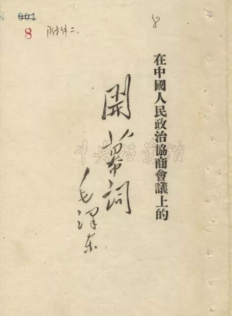 选自《毛泽东著作选读》下册(人民出版社1986 年版)。本文是毛泽东在中国人民政治协商会议第一届全体会议上所致的开幕词。