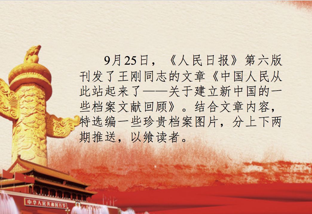诸位代表先生们,我们有一个共同的感觉,这就是我们的工作将写在人类的历史上,它将表明:占人类总数四分之一的中国人从此站立起来了。中国人从来就是一个伟大的勇敢的勤劳的民族,只是在近代是落伍了。这种落伍,完全是被外国帝国主义和本国反动政府所压迫和剥削的结果。一百多年以来,我们的先人以不屈不挠的斗争反对内外压迫者,从来没有停止过,其中包括伟大的中国革命先行者孙中山先生所领导的辛亥革命在内。我们的先人指示我们,叫我们完成他们的遗志。我们现在是这样做了。我们团结起来,以人民解放战争和人民大革命打倒了内外压迫者,宣布中华人民共和国的成立了。我们的民族将从此列入爱好和平自由的世界各民族的大家庭,以勇敢而勤劳的姿态工作着,创造自己的文明和幸福,同时也促进世界的和平和自由。我们的民族将再也不是一个被人侮辱的民族了,我们已经站起来了。我们的革命已经获得全世界广大人民的同情和欢呼,我们的朋友遍于全世界。