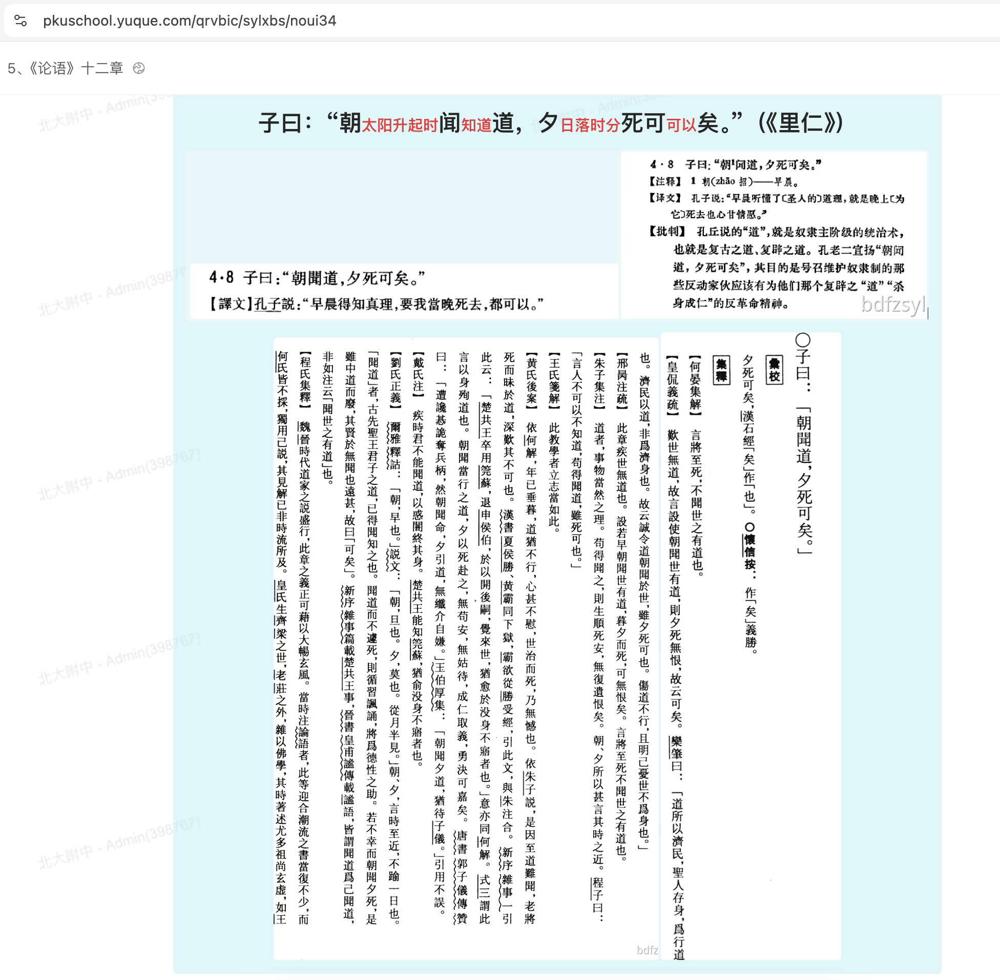【译文】孔子说:“早晨得知真理,要我当晚死去,都可以。”