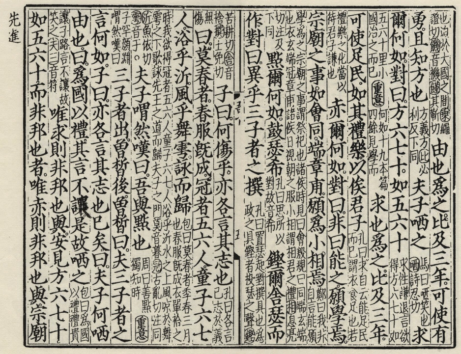 子路率尔[6]而对曰:“千乘之国[7],摄乎大国之间[8],加之以师旅[9],因之以饥馑[10];由也为之[11],比及[12]三年,可使有勇,且知方[13]也。”