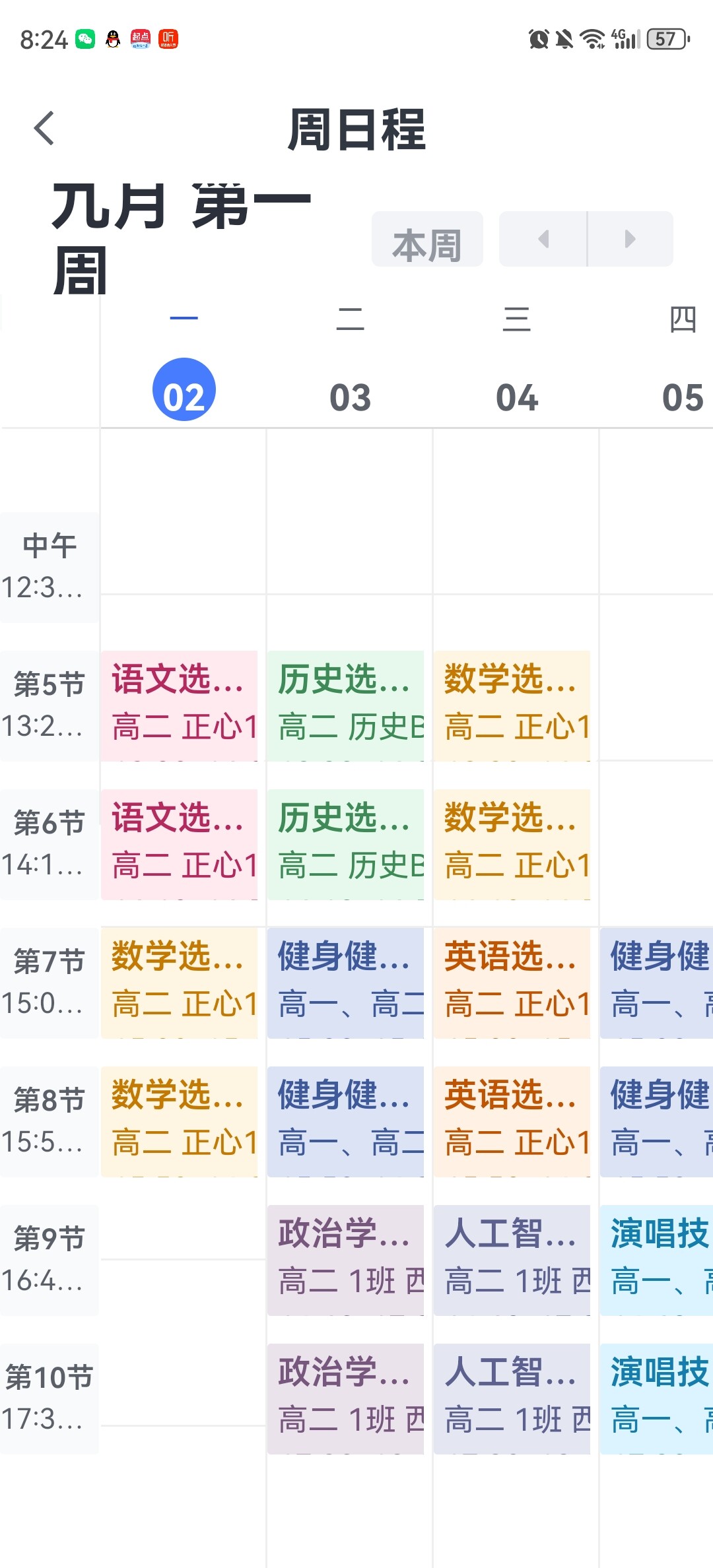 The image shows a screenshot of a digital class schedule in Chinese, likely for a high school student, displaying the courses for the first week of September. (Captioned by AI)