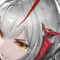 A close-up illustration showcases a character with white hair, glowing orange eyes, and red accents, possibly from clothing or accessories. (Captioned by AI)