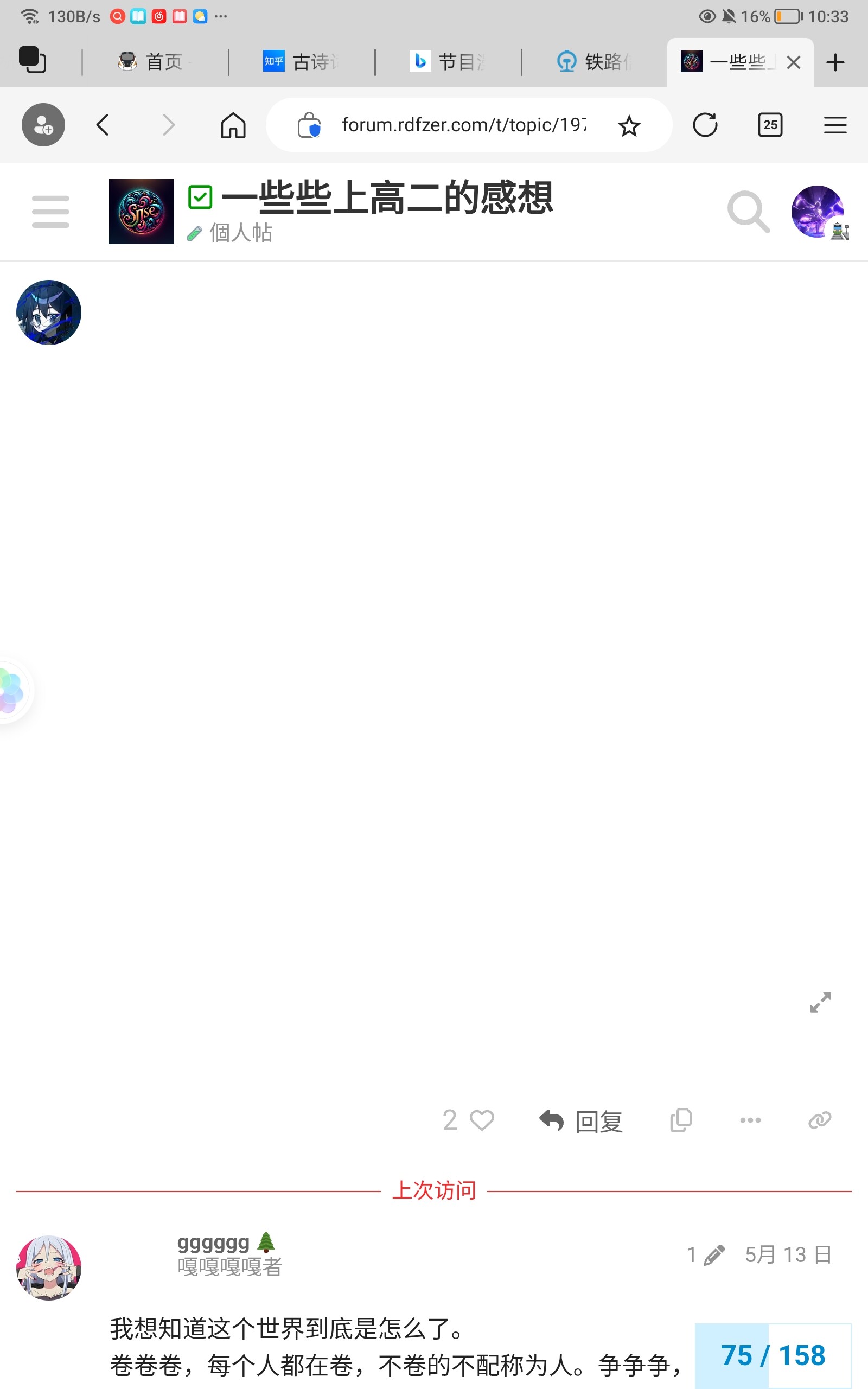 如果說你高二這一年的所有帖子是一首長詩,那它的主題就是「掙扎與自洽」。