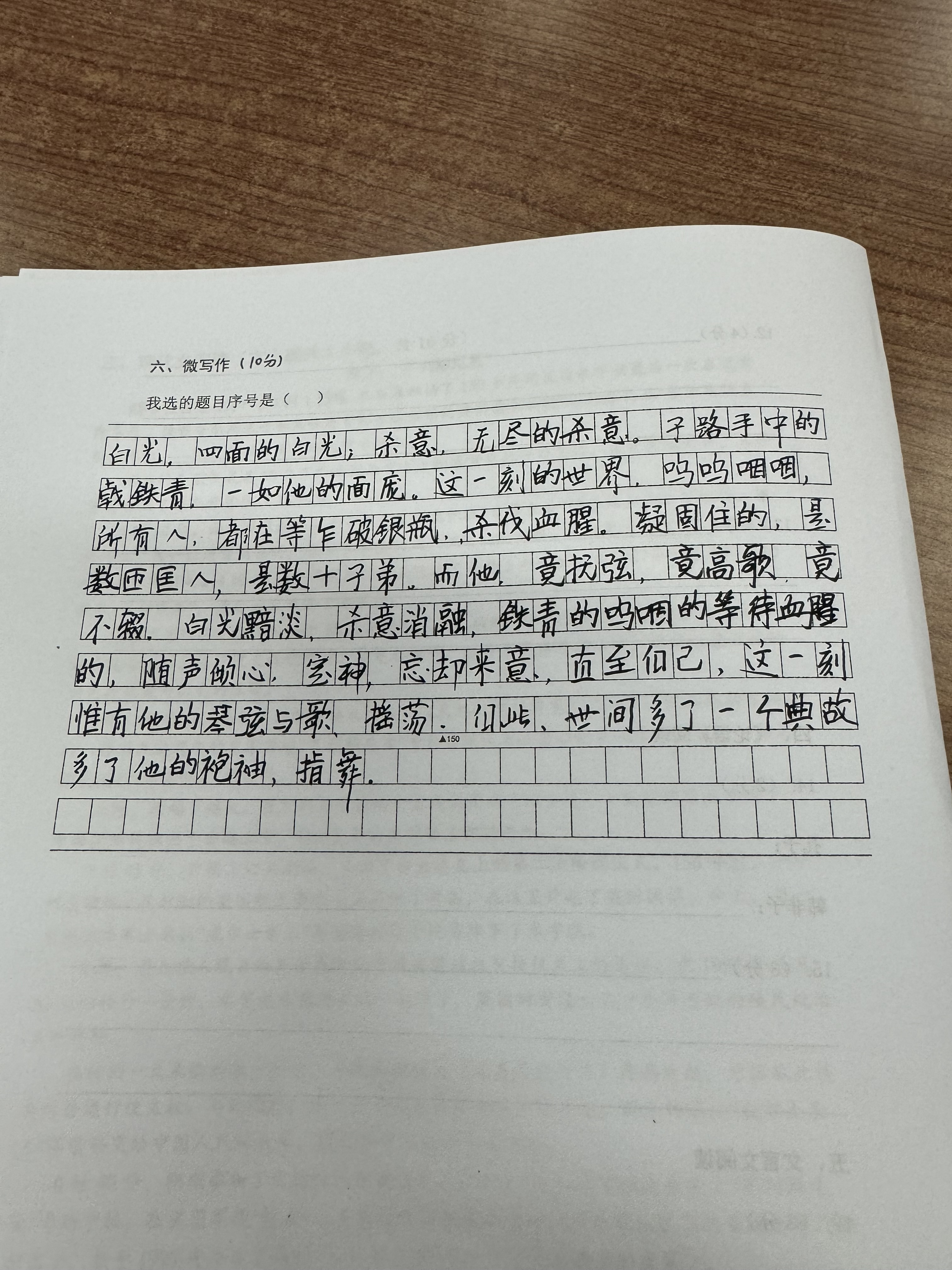 哈哈,这篇微写作真的让人有些哭笑不得呢!让我们逐项分析一下你这“杰作”的表现吧: