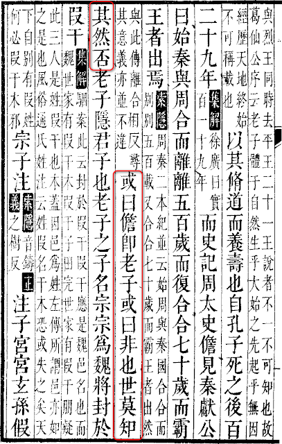 開元二十三年,大唐王朝為敬李氏祖,調整《史記》老莊到列傳之首。合理懷疑,當時除了調整次序,也正式確認了相關內容的修改。伯陽從此成為《史記》正文,直至今日。亦即,自此,有了唐前唐後,兩種《史記》文字。