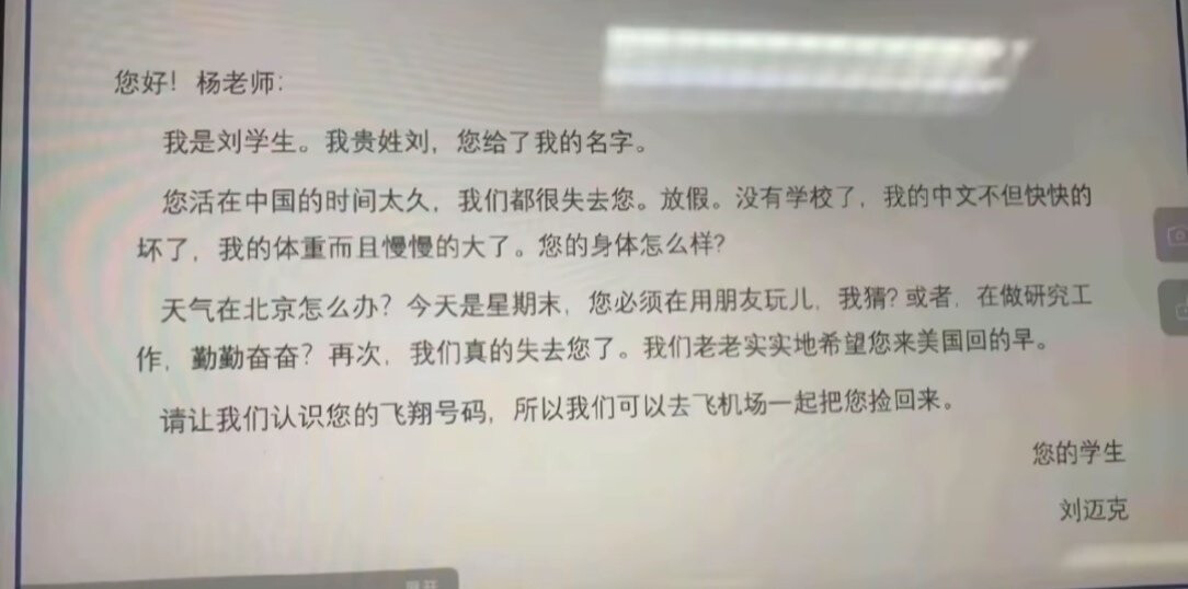 The image shows a letter written in Chinese, seemingly addressed to a teacher and expressing longing and concern. (Captioned by AI)