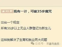 还解决了人口老龄化问题。毕竟35登记新生儿估计档案上60多刚退休就死了,先别管现实怎么样你就说数据上是不是好看了吧 ![]()
