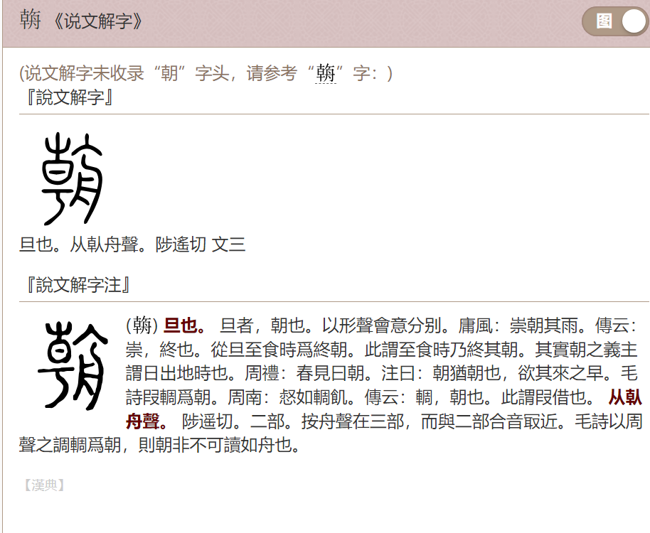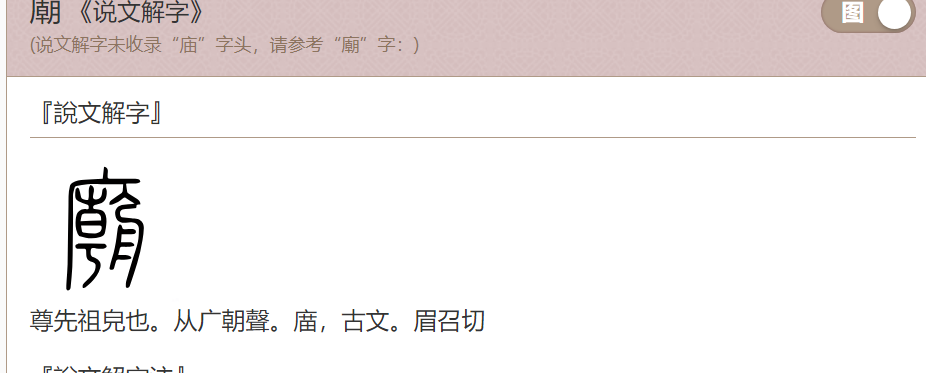 最后看到繁体的庙字时分神奇,说文言:从广朝声 不知道朝和庙有什么什么相似的声音故查,发觉朝繁体做