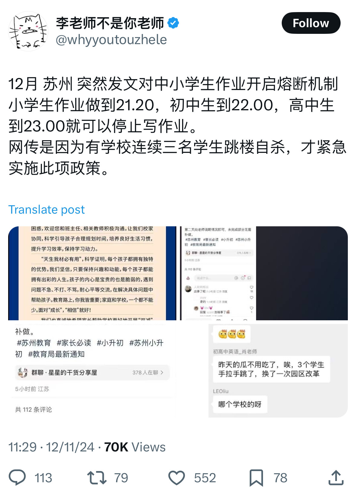 想要学减负教育的前提是你得保证大家都一样不存在extra learning time,而不是变相的阻碍普通人家的孩子上进以求改变生活,不降低升学带来的阶级分化和分流压力,这属于本末倒置了。
