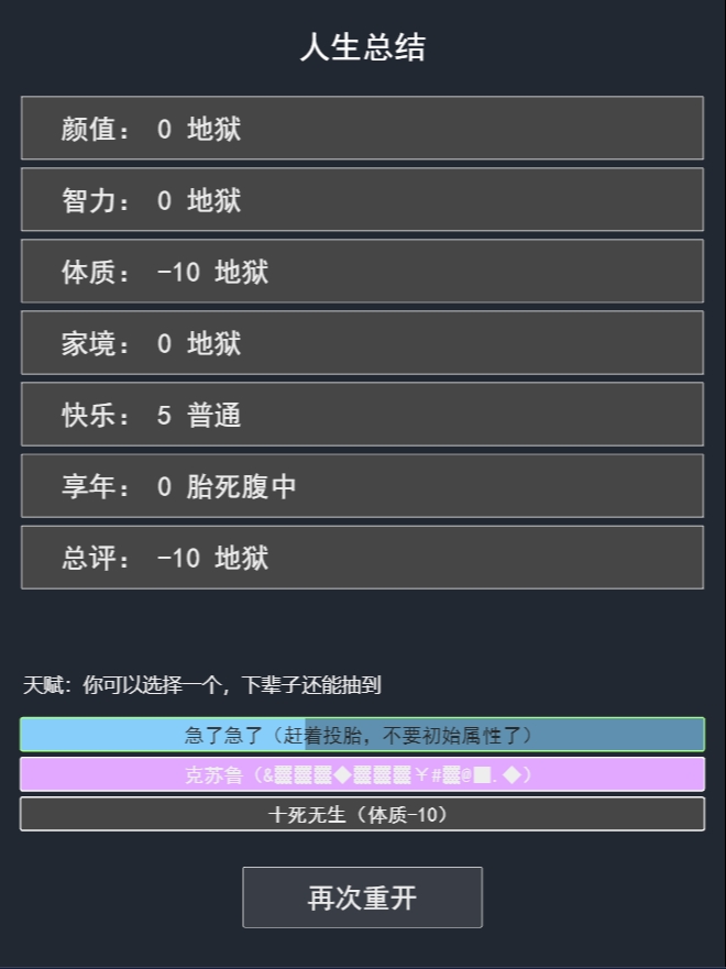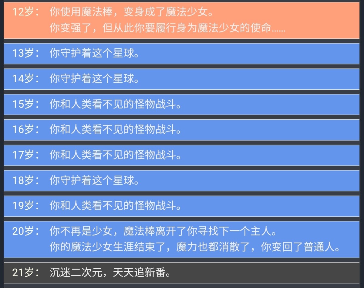难绷,历史名人模式里,每次都是性转迪士尼能出生在美国,能看动漫,能当魔法少女。而其它正经女孩子都挣扎在农村里,有魔法棒都没机会用。 另外,贫穷的姜子牙从没活过3岁,要么饿死,要么被洪水淹死…… 从某种程度上说,意外的非常现实…
