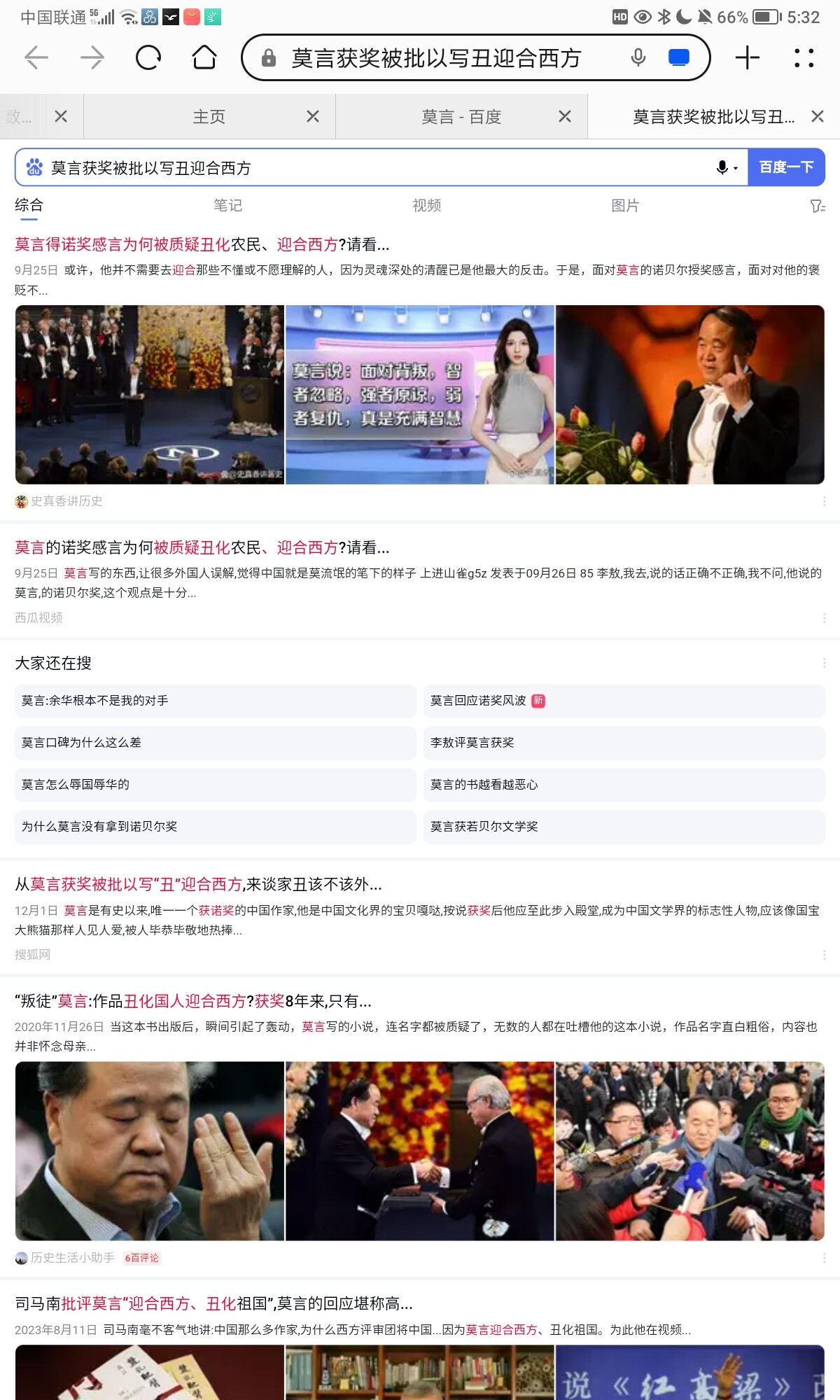 說莫言拿諾獎是罕見的一直有啊()