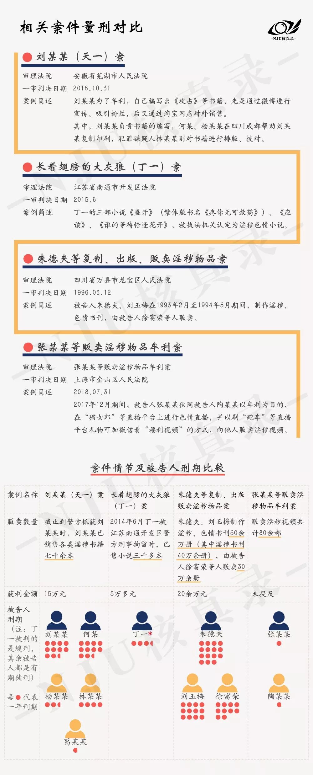 那么除天一案外,国内其他涉及贩卖淫秽物品的案件量刑情况如何呢?核真录记者从北大法宝网上选取了另外三起与贩卖淫秽物品相关的案件,对其中的案件情节和刑罚进行了对比和分析(为方便比较均采用一审结果)。