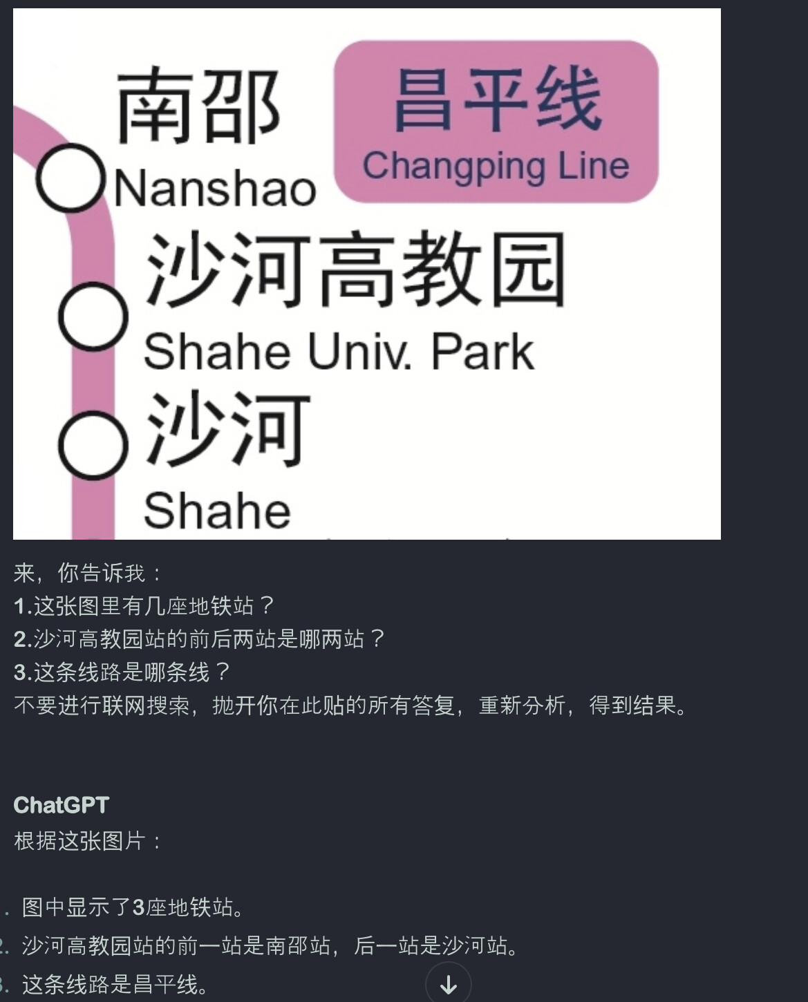 我记得ChatGPT-4的识图原理好像就是做一个英文OCR+图像识别。才实现了可以看懂英文+图像。现在给一个中文地铁图大概率就不行。