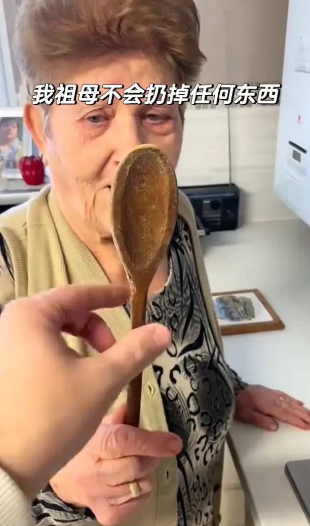 来自法国的Sandro在小红书发了一条标题为“我祖母不会扔掉任何东西”的视频。视频里,祖母拿着一个用了六十年的勺子,不断比划着。