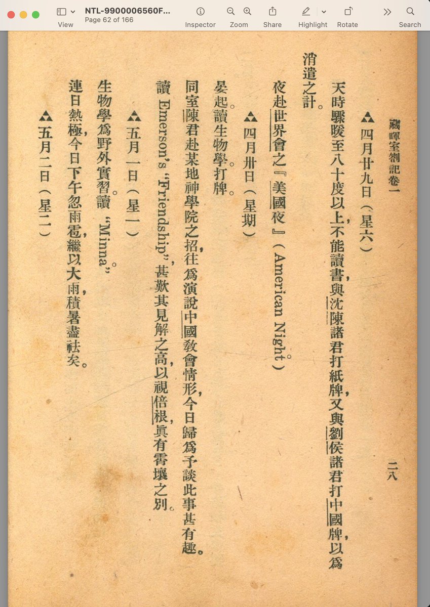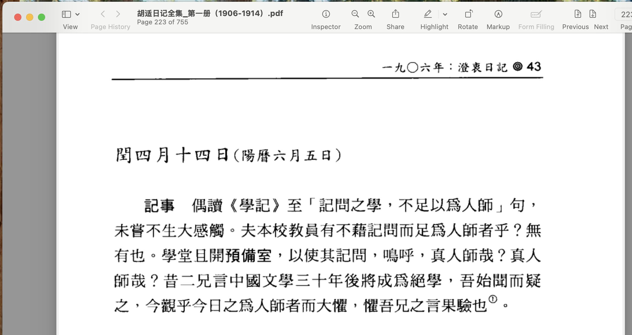 翻胡適留學日記。起因是網絡流傳胡適打牌梗。但翻到卷一57頁時發現,應該細翻且記錄下。