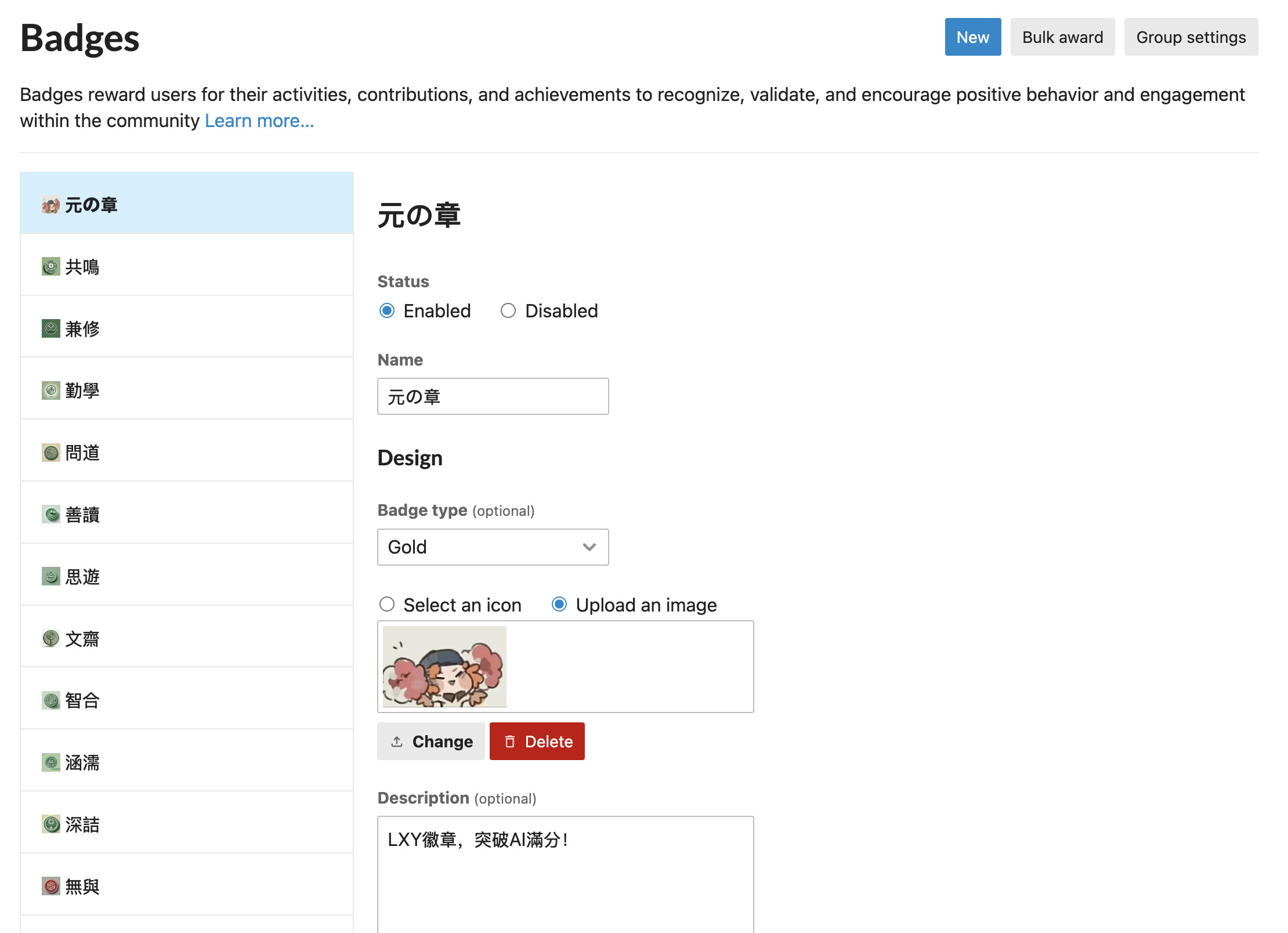 增加一個徽章。 已授予本尊。 諸位加油吧:)