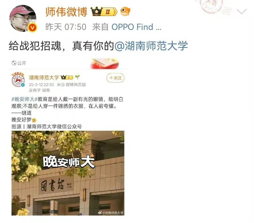 看这种杀气腾腾的架势,我都有点替湖南师范大学官方微博的小编担心。