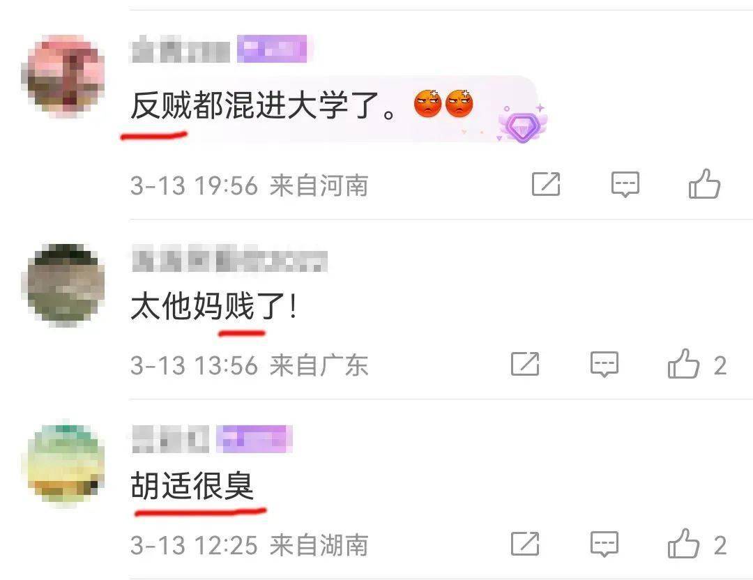 可是,大概让湖南师范大学官方微博的小编都没有想到的是,就因为这条微博中提到了“胡适”这两个字,便引来了一些人的围殴。一些几十万、几百万粉丝的帐号倾巢而出,有骂脏话的,有骂胡适是“反动派”的,有骂胡适“和犹太财团暧昧不清”的。