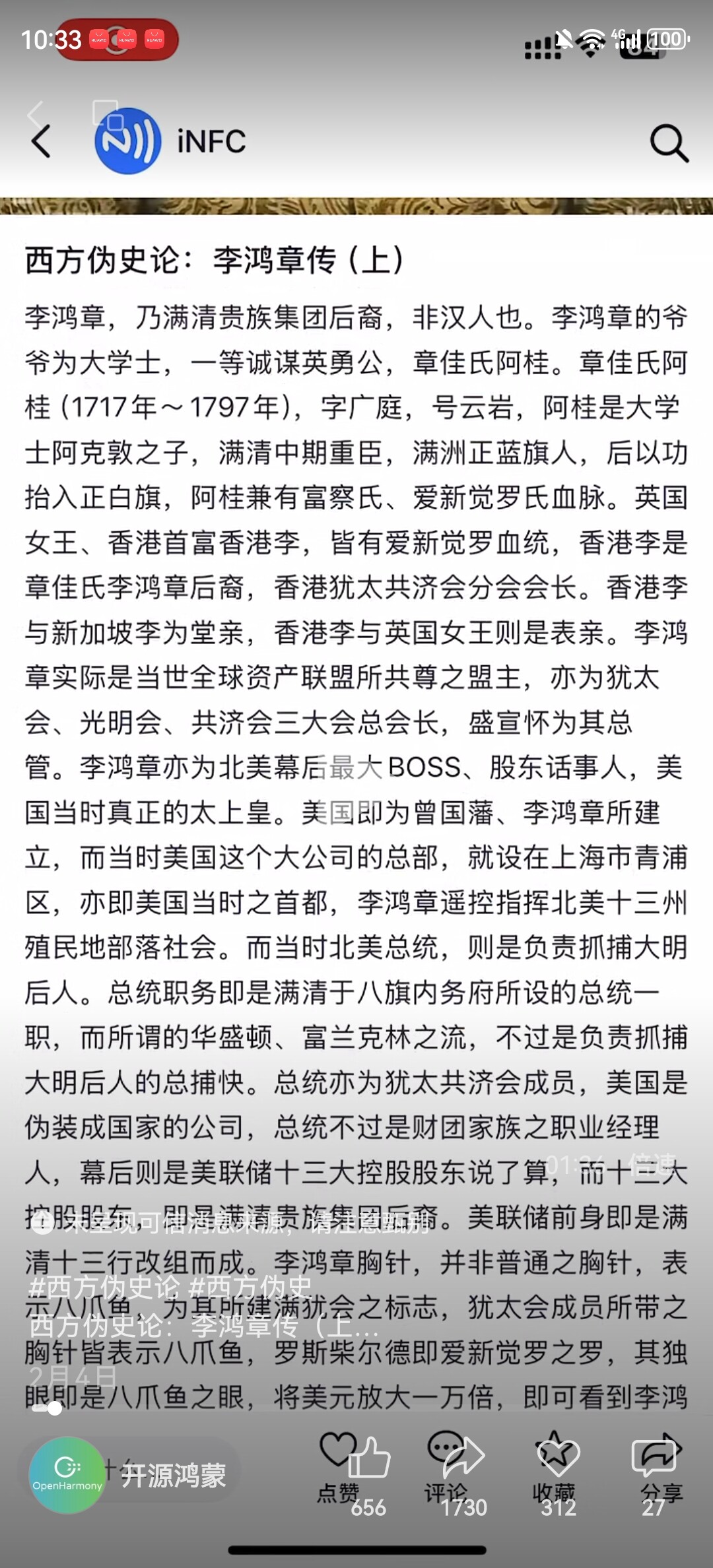看似虚构史学家,实则给鸿蒙招黑( 总的来说是在玩抽象